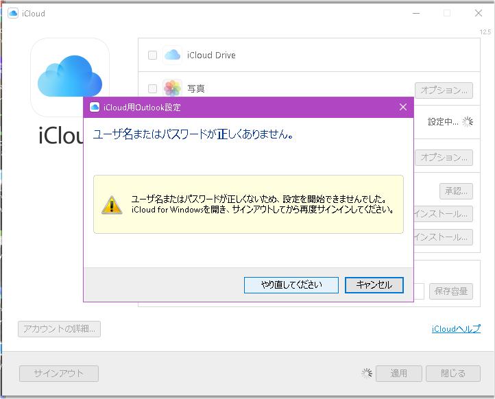 >iCloud のカレンダー、メール、連絡先を Outlook に追加できない場合