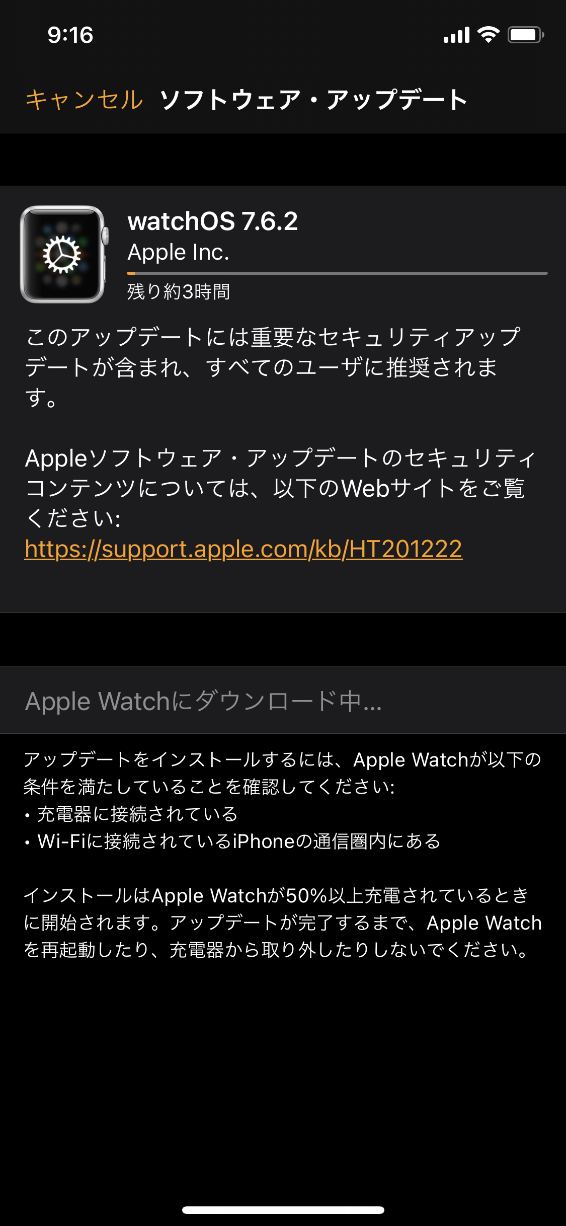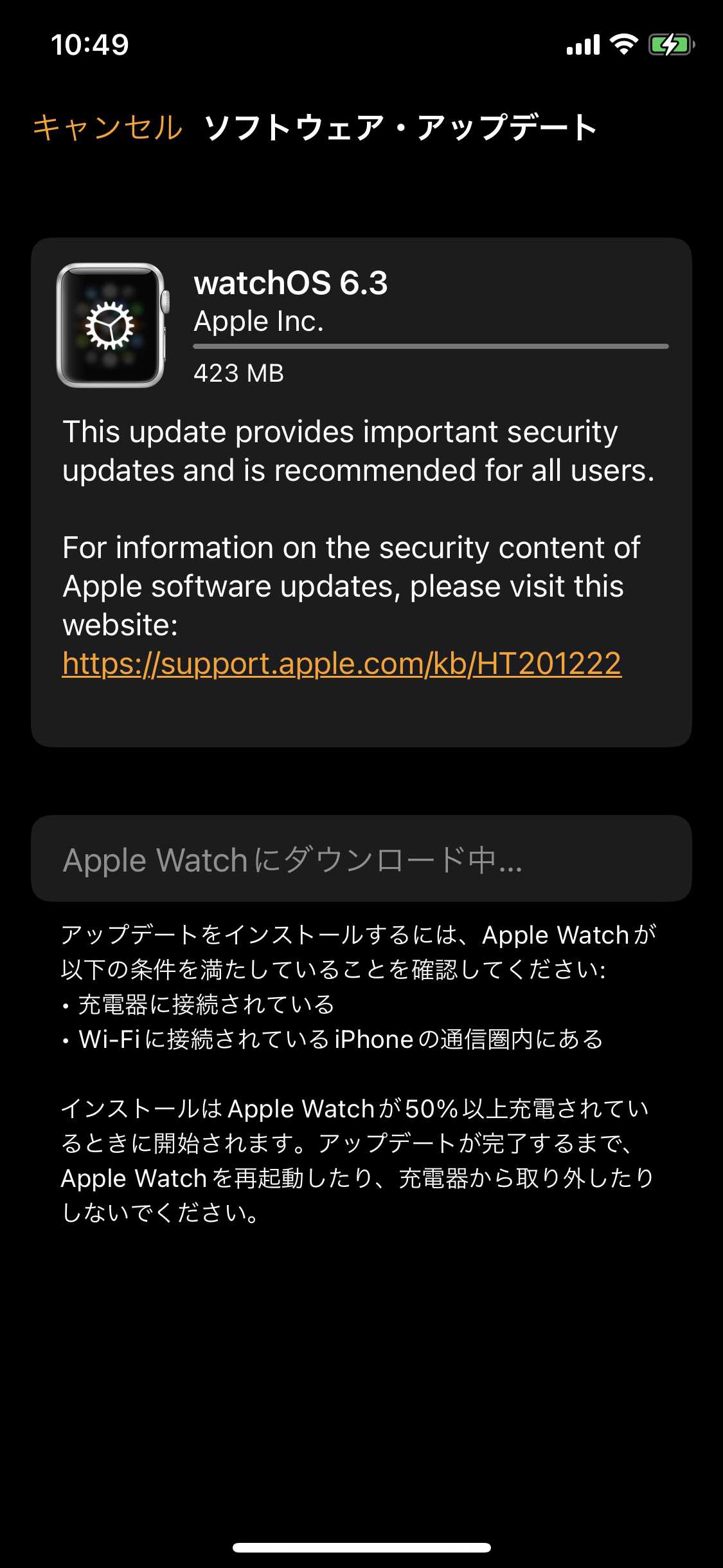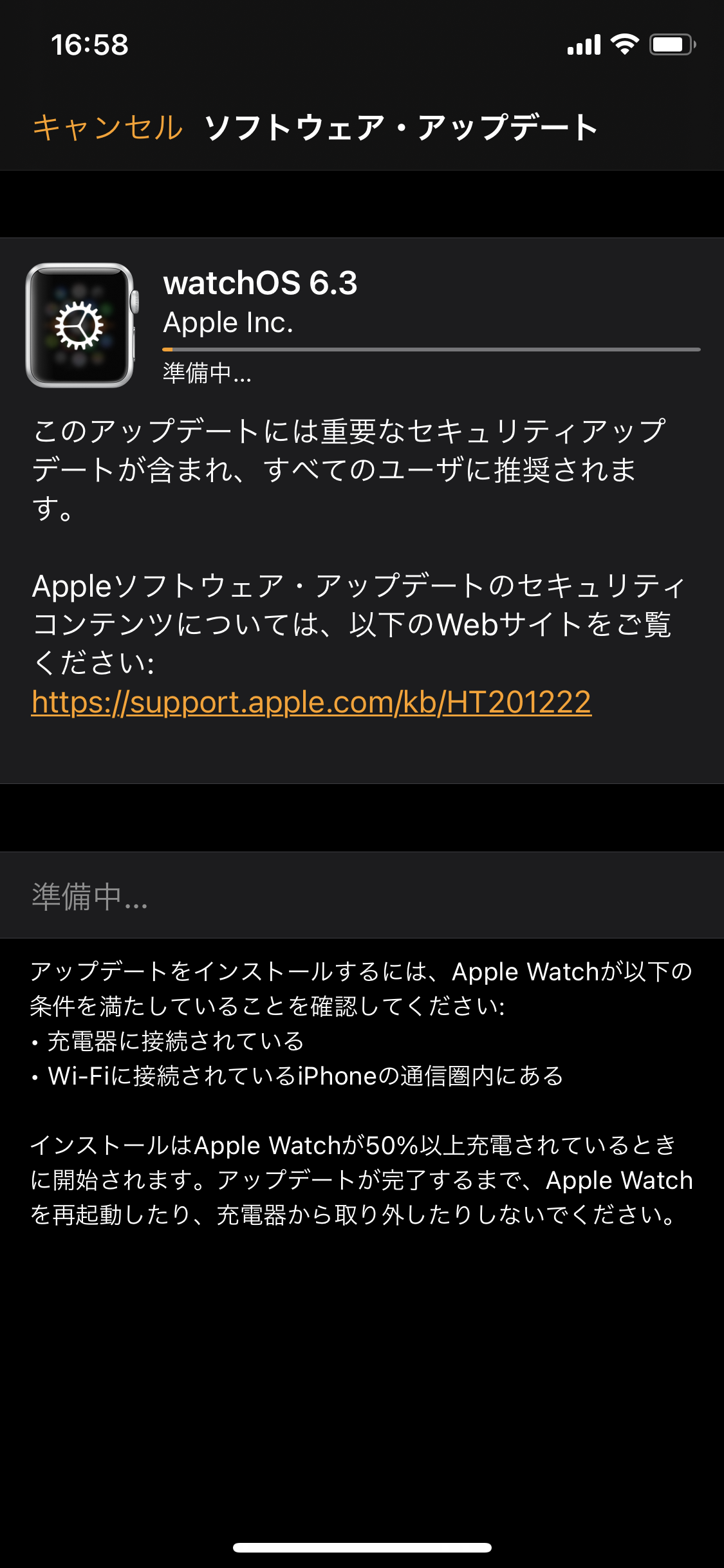 初期化しているせいか、リセット後の初回はwatchOS 6.3のアップデートに失敗し