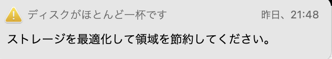 ストレージを最適化して領域を節約してください。と出ました。