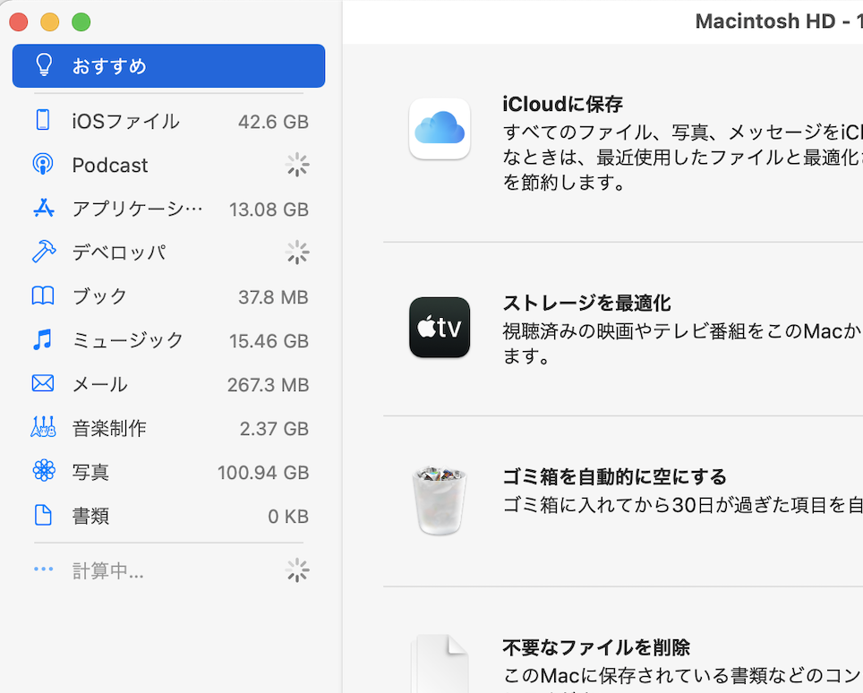 なので、一度、iCloudDriveにバックアップ目的でコピーした128GBのファイル類は外付けHDDにでも移動させた上で、クラウドの使い方から見直した方が良いでしょうね。
