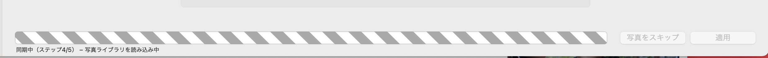 写真の同期もチェックを外すことで、次回から同期を開始しても(写真の同期がスキップされるので)途中で止まることは無くなりました。