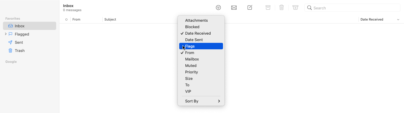 メールにフラグの設定はできますが、ヘッダーのみに表示されメッセージリストには表示されません。