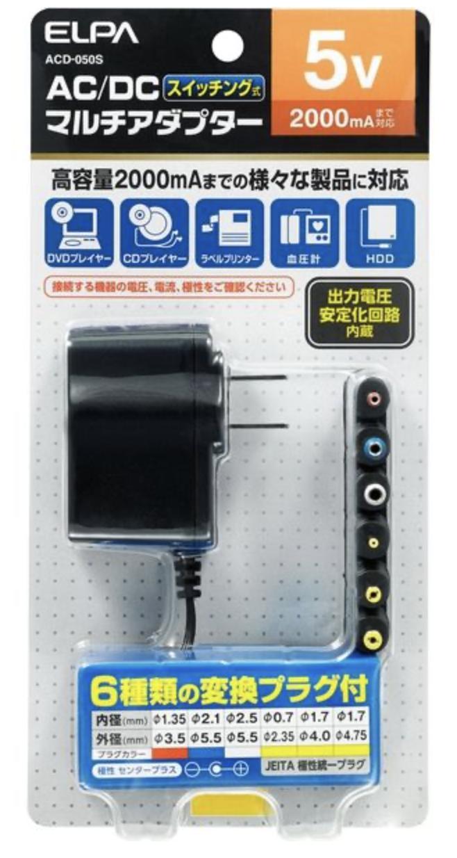 もしくは、5V/2.4A出力以上のセンタープラスのACアダプタを手に入れて下さい。