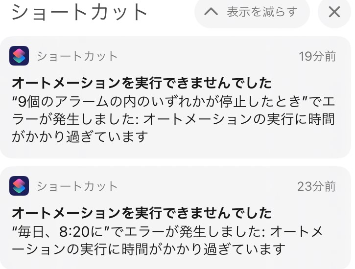 ショートカットアプリからはオートメーション以外にショートカットが使えますが、そちらは問題なく使えています。