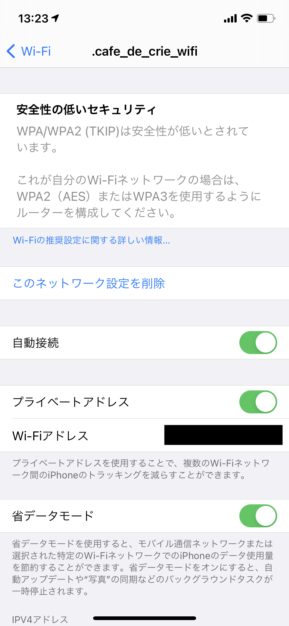 wi-fiが安全性の低いセキュリティと表示されて接続できない