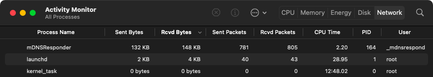 また、Activity MonitorのNetworkでは、終了したプロセスはリストから消えてしまいます。張り付いて見ていないとならず、ツールとしては不便と言わざるを得ません。ネットワークを監視する場合、別のツールの導入は不可欠です。