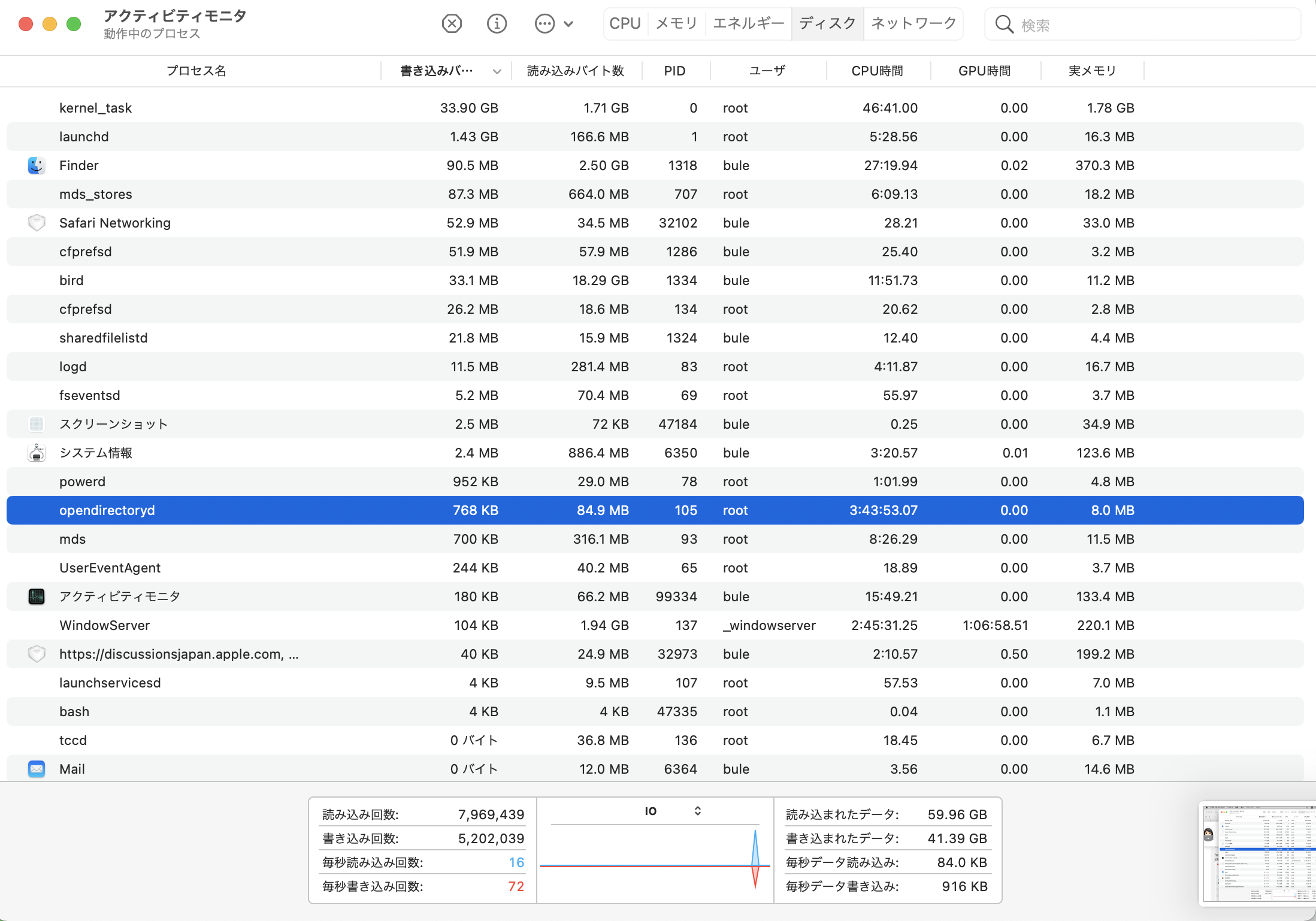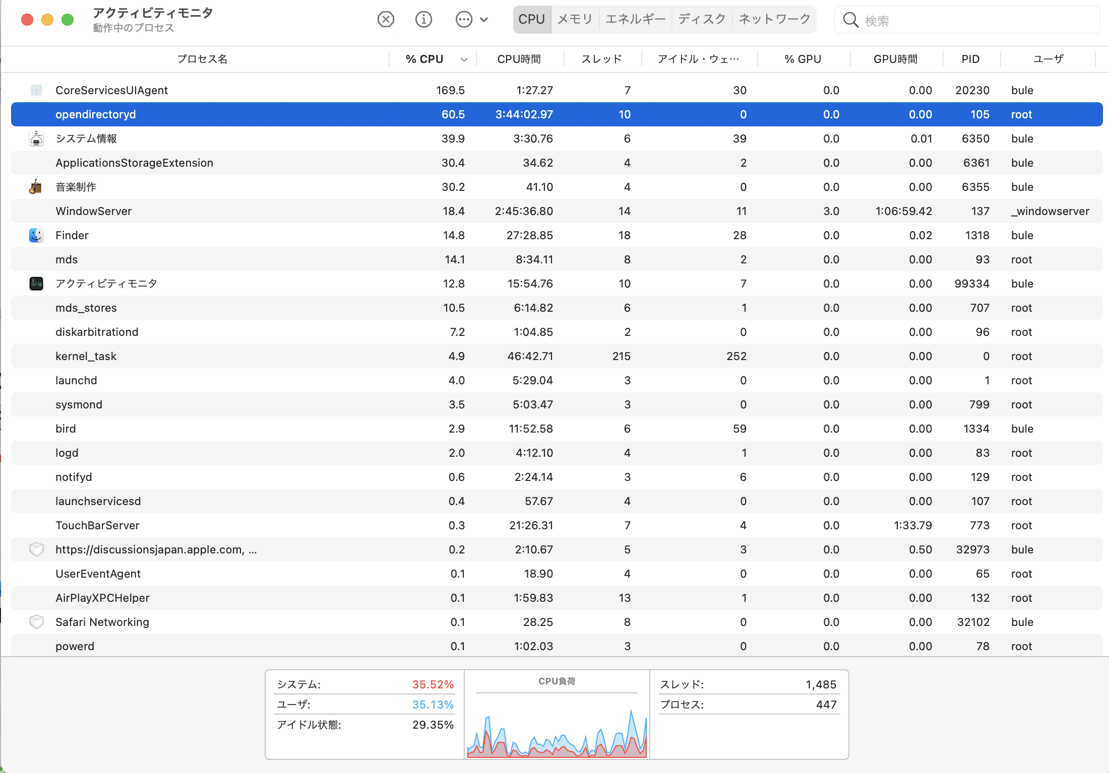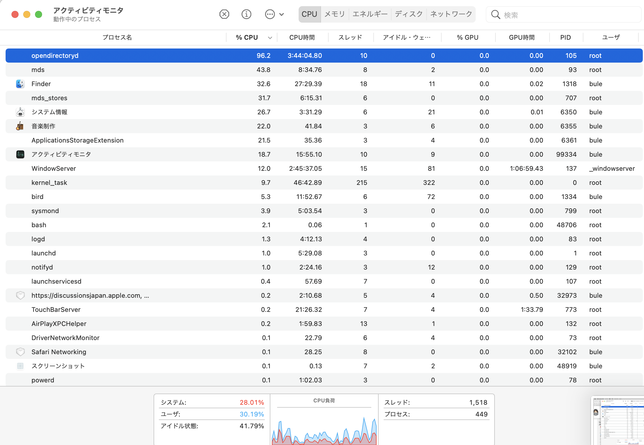 このスレッドの主旨は結局のところ、ファンが回ったので原因を特定しようとしたわけですよね?ファンが回るのは別に異常動作ではないので、気にする必要はありません。そして、Activity Monitorで見るべきは%CPUが多いプロセスです。