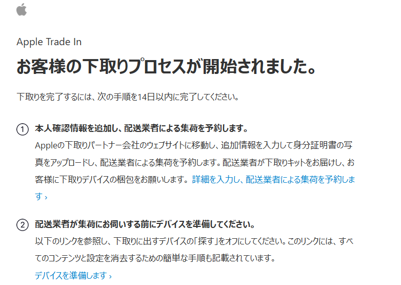その後に「下取りの手続きのために少し情報が必要です」というメールを受信し