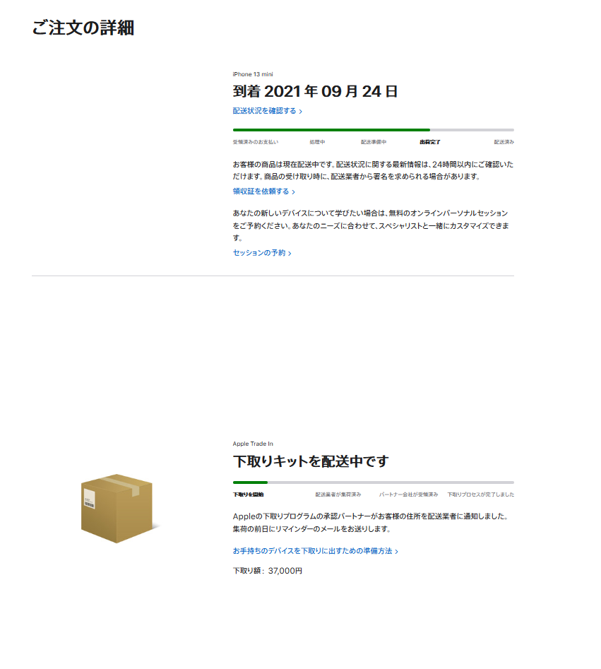 先日iPhone13を購入しまし、本日発送の連絡を受けました。