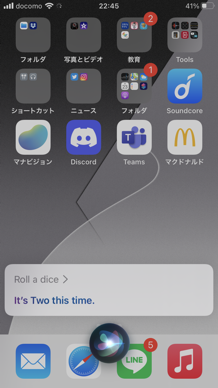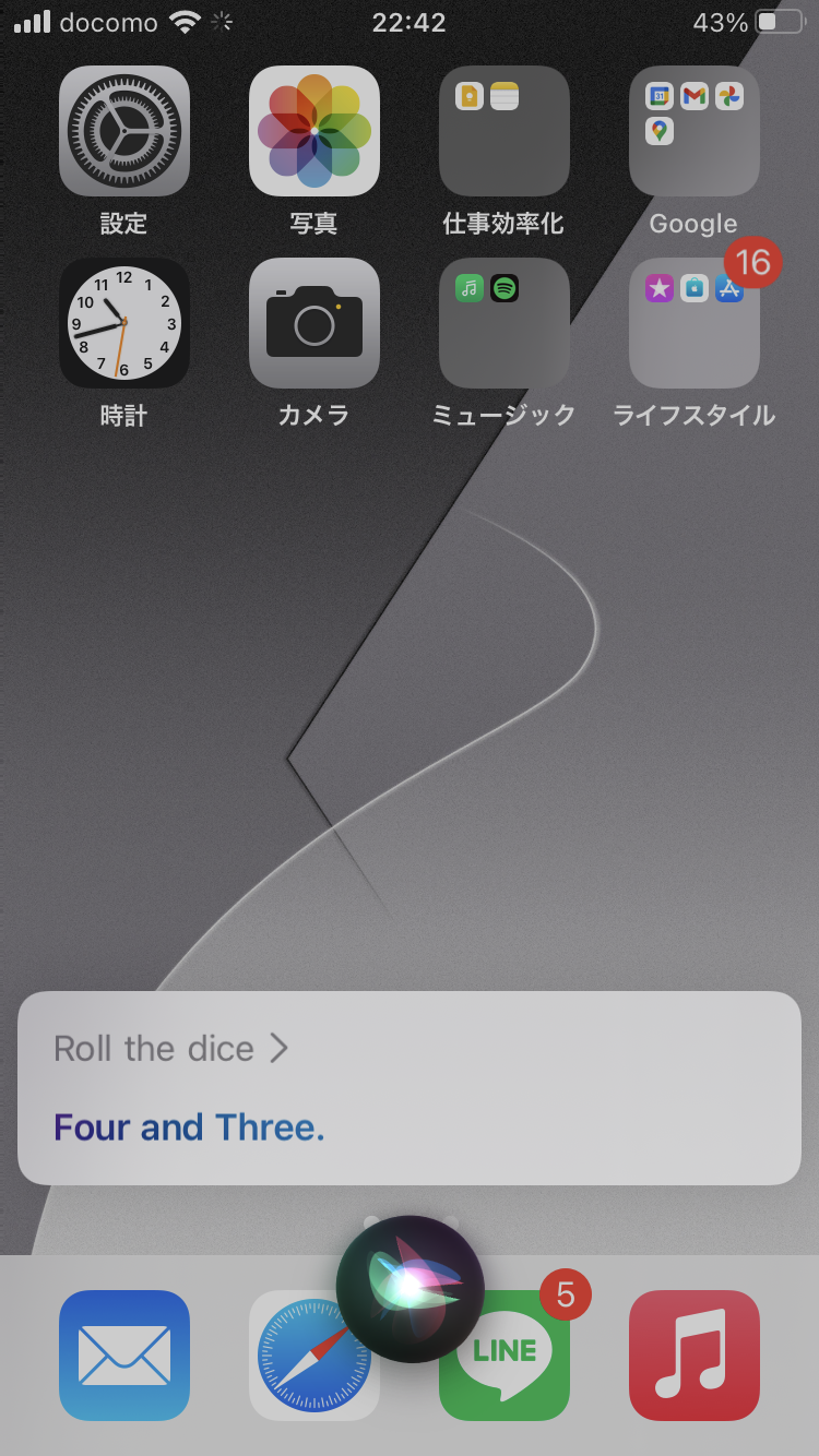 "Roll a dice"と言った時はサイコロを一つだけ振ってくれるんですが、"Roll the dice"と、aをtheに変えるとサイコロを2つ振ってくれます。