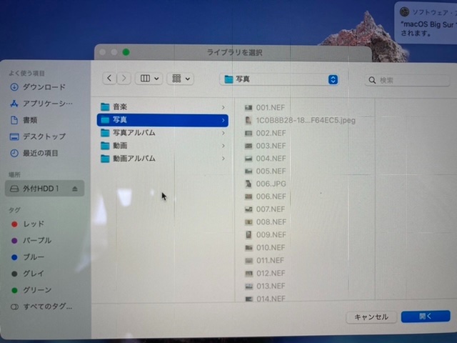 数ヶ月の間に夫が外付けHDDに音楽を保存したらしく、その際にOSのアップデートをしたようです。