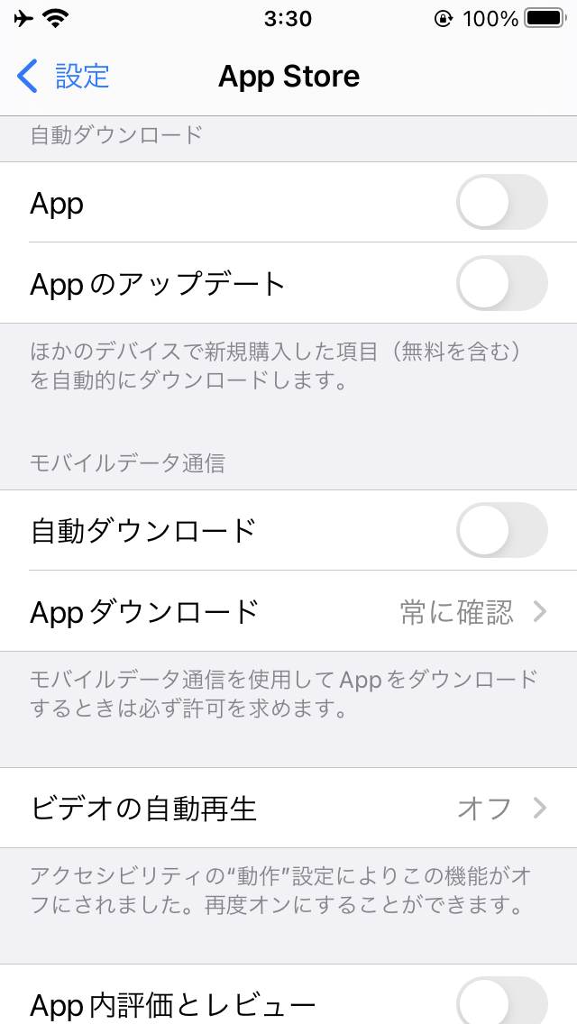 1.自動ダウンロード等の項目を一度オンにし、再度オフにして様子を見る。