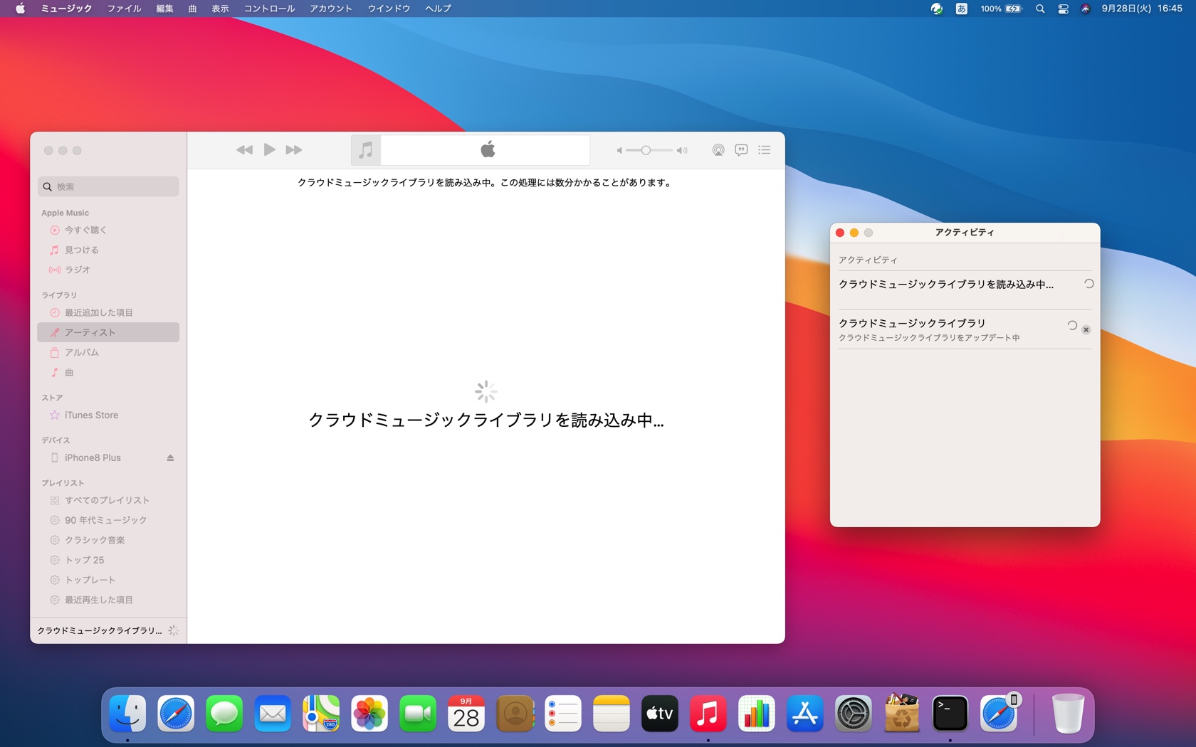 アクティビティを開くと、クラウドミュージックライブラリをアップデートもしているようです