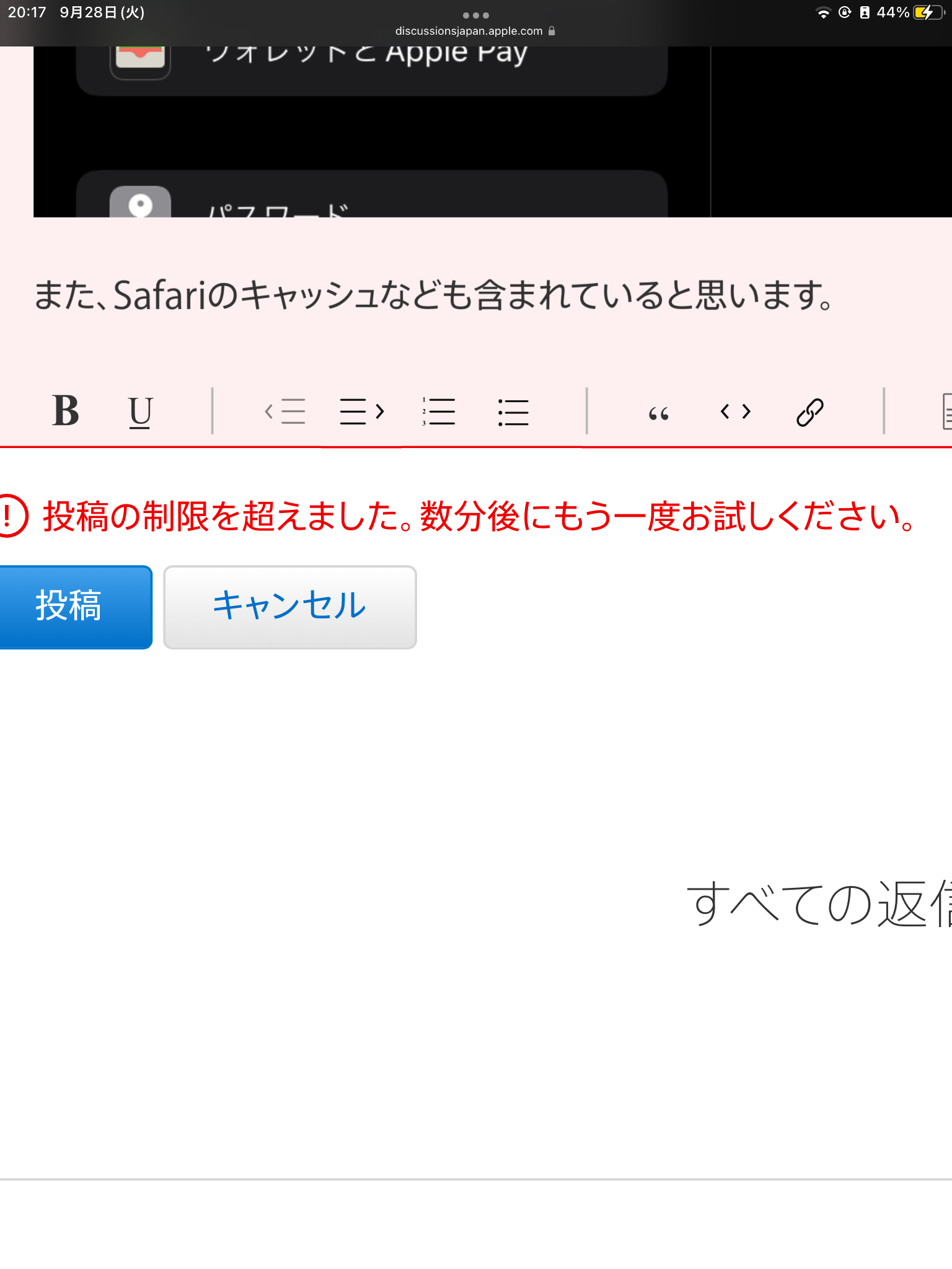 このスレッドはシステム、またはAppleコミュニティチームによってロックされました。 問題解決の参考になる情報であれば、どの投稿にでも投票いただけます。またコミュニティで他の回答を検索することもできます。