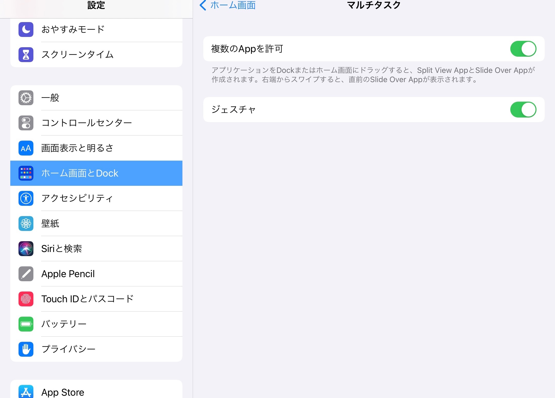 うひゃさんのおっしゃる通り、iPadOS15へアップデートしたら、マルチタスク自体が消えてしまいました(>_<)