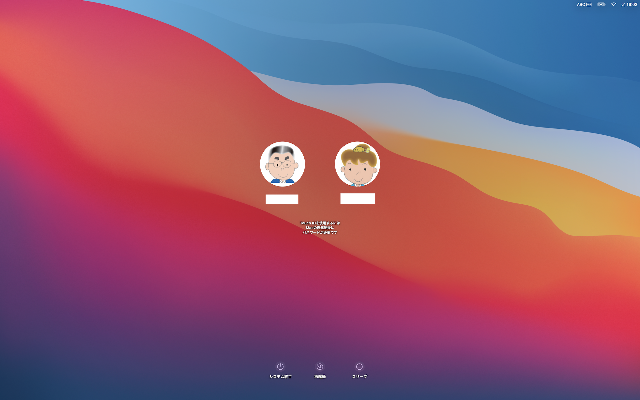 デスクトップピクチャ(ログイン後の画面)が変更できません(再起動すると元に戻っています)。