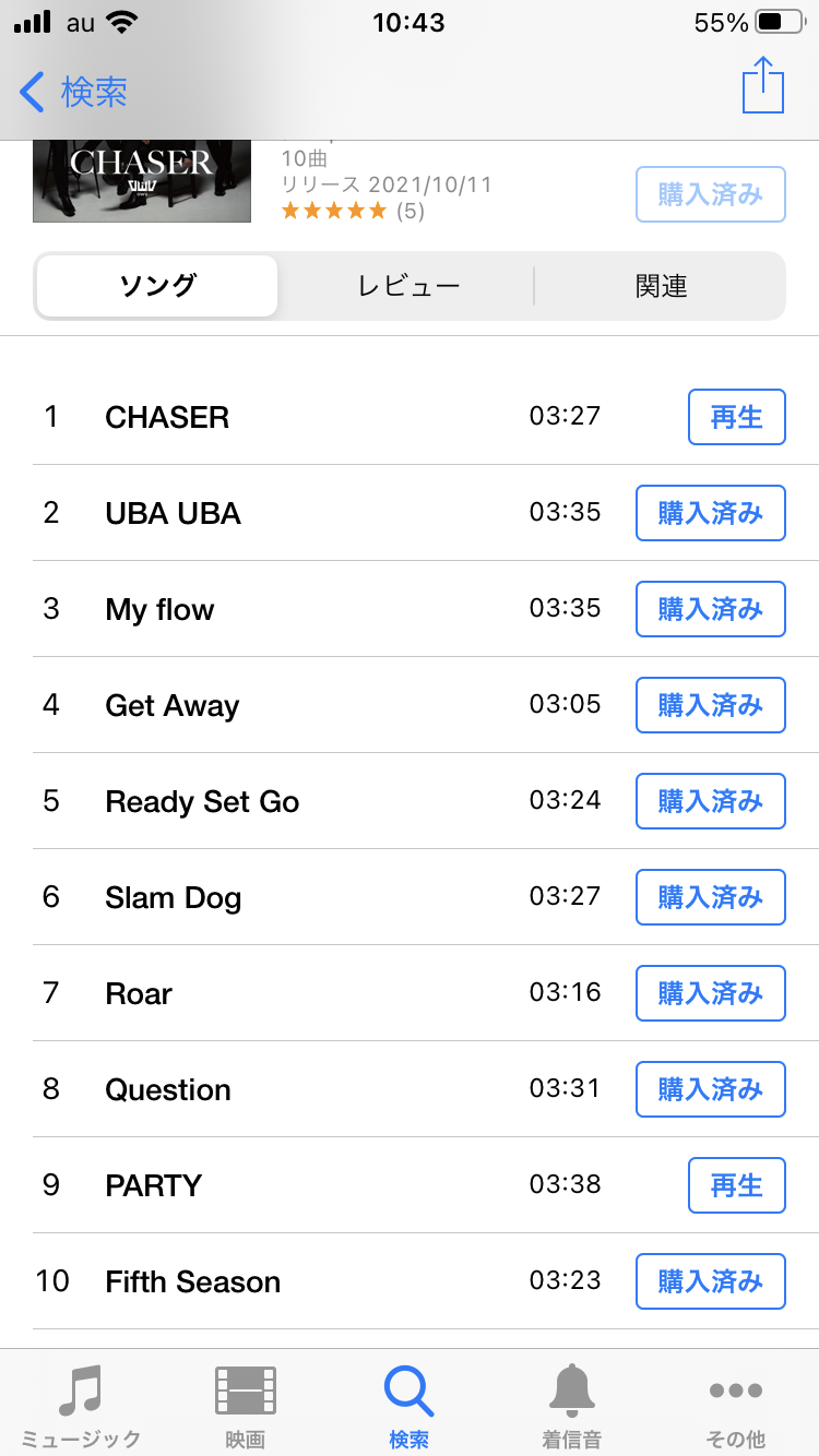 OWV のアルバム「CHASER」のリリース日は 2021 年 10 月 11 日ですが、Apple のサーバは、PST:太平洋標準時(UTC-0800)、または PDT:太平洋夏時間( UTC-0700)で管理されており、JST:日本標準時(UTC+0900)とは 16 時間、または 17 時間の時差が有ります ので、本日 16 時以降、または 17 時以降に、再度確認されて見ては如何でしょうか?