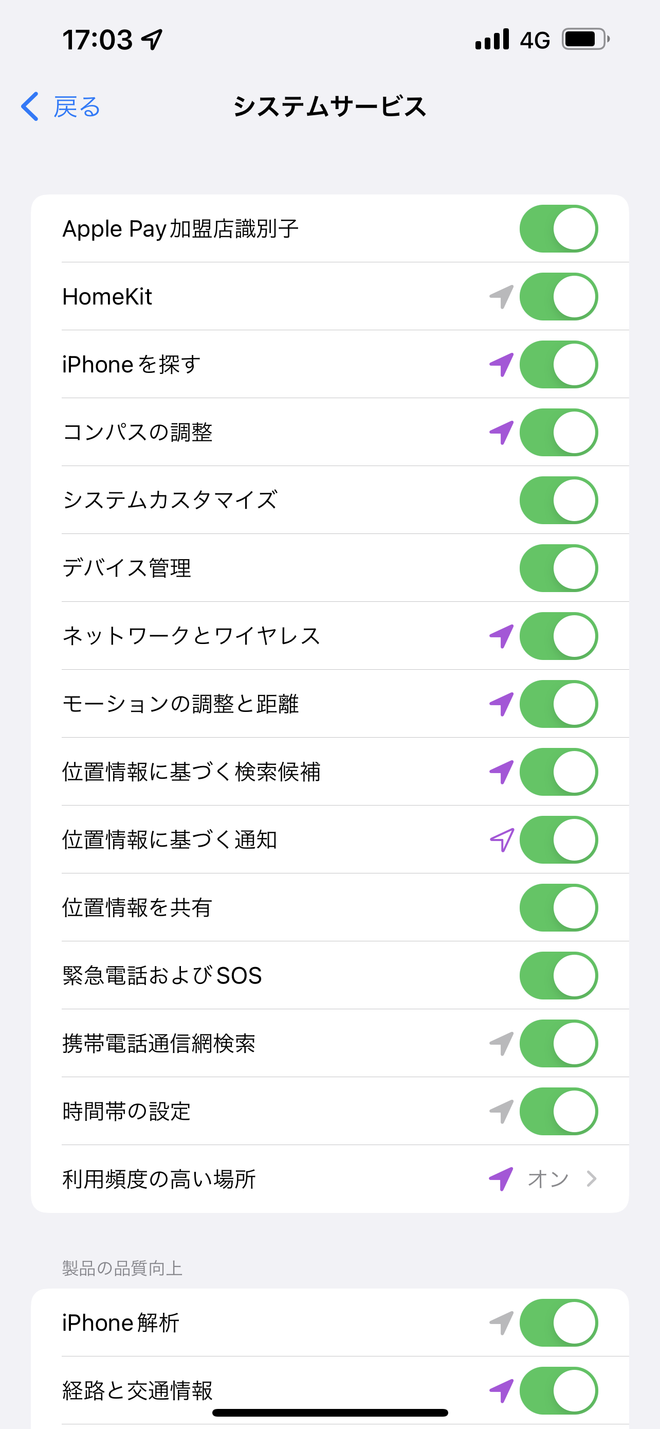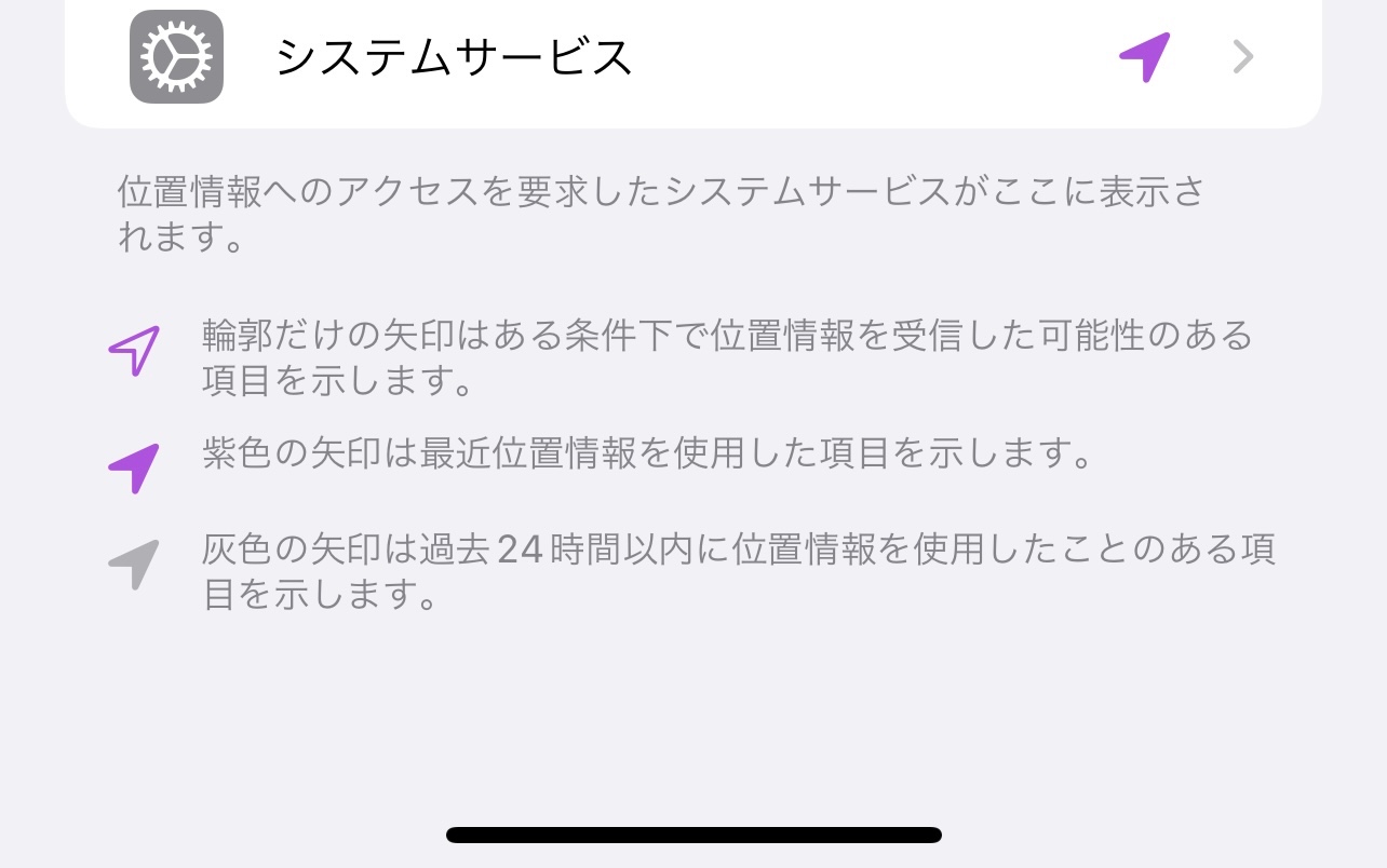 iPhone 13 Pro 左上に位置情報マークが表示されたまま