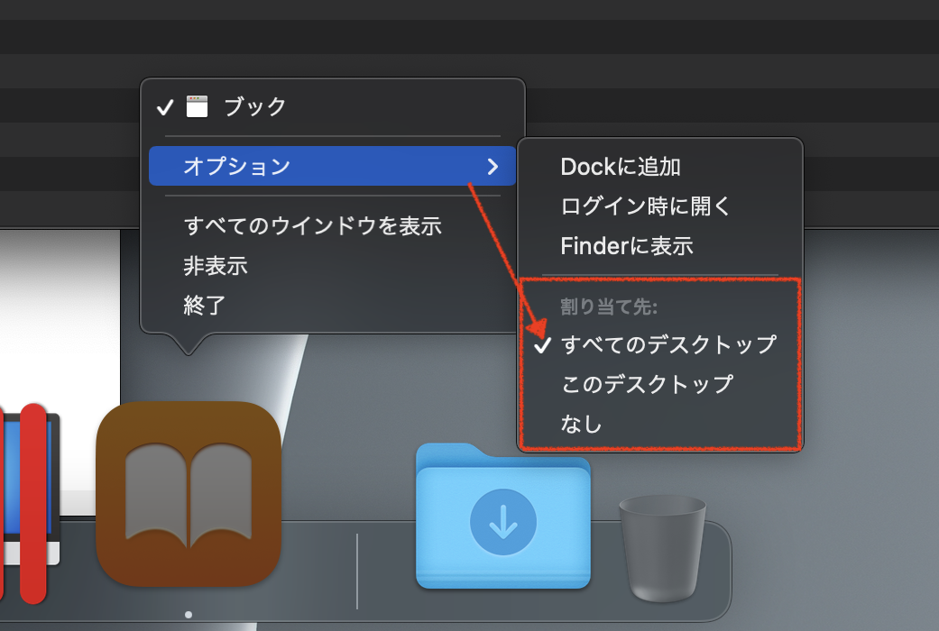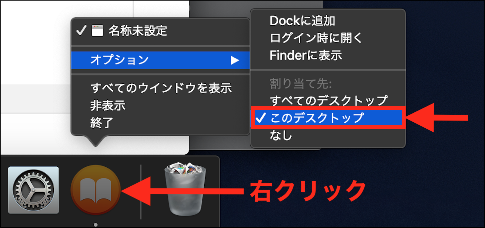 しかしながらブックアプリとiTerm2の二つだけは、どこのデスクトップに移動しても同じウィンドウが表示されてしまいます。