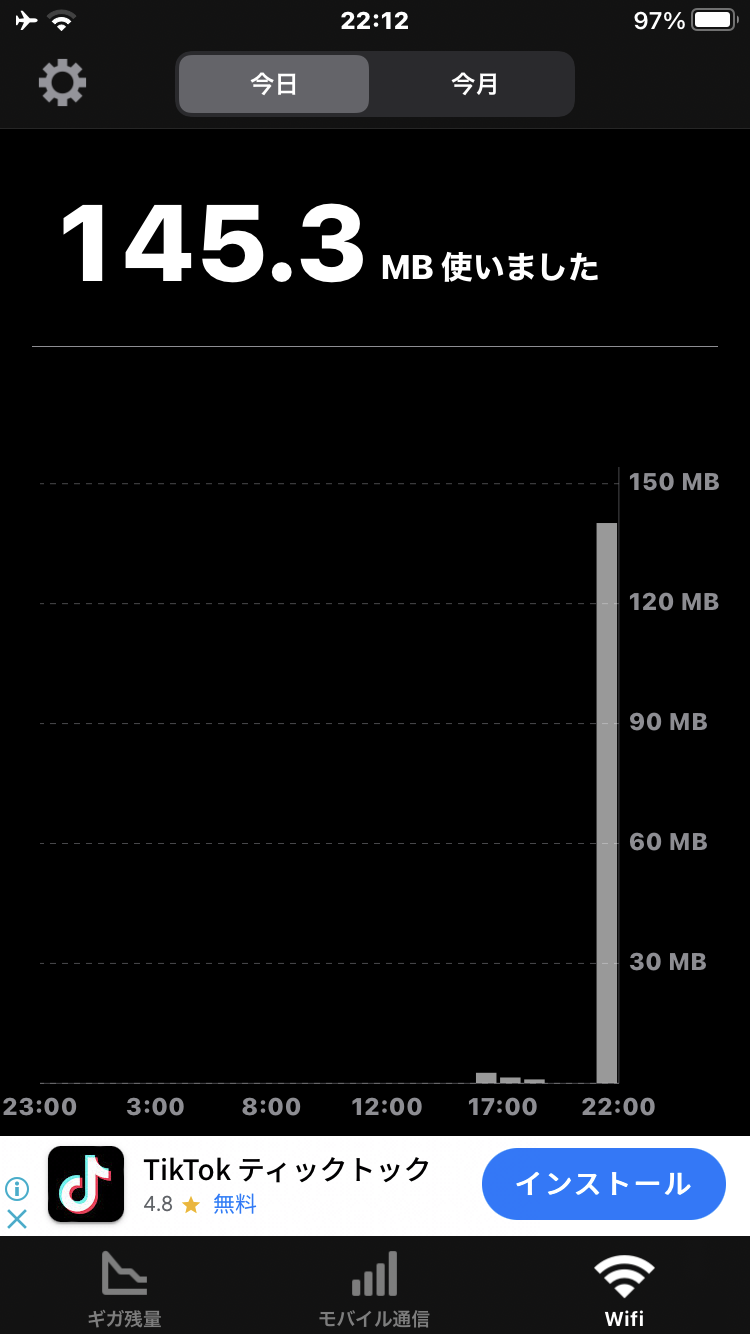 ギガ残量というアプリを入れて充電したのですが、充電中のwifi通信量がとんでもなく多いことに気が付きました。