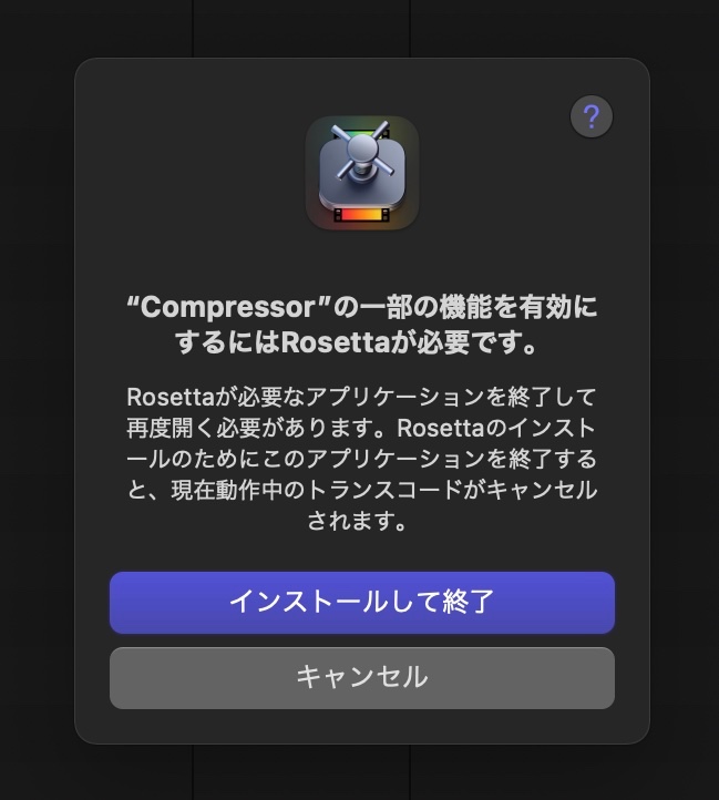 MacBook Air (2020) 上で Compressor 4.6 に Rosetta をインストールできない