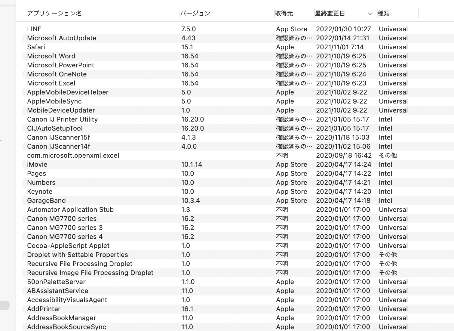 このmacについてーシステムレポートーソフトウェアーアプリケーションの中に、