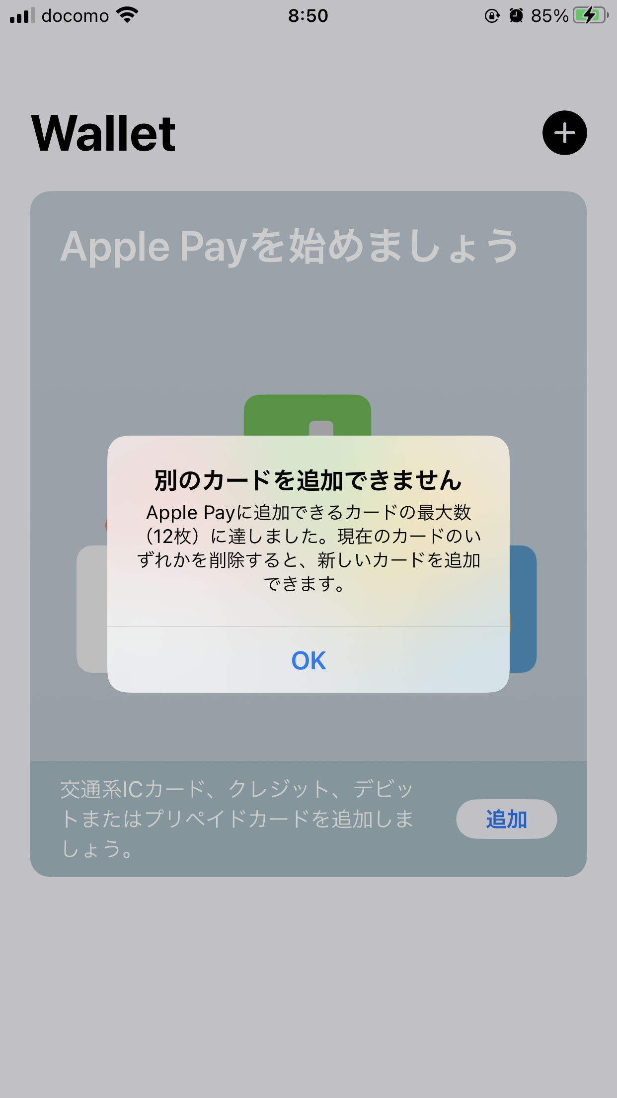 現在1枚も登録されていないのですが、追加しようとすると12枚上限に達しているため追加できませんと出ます。