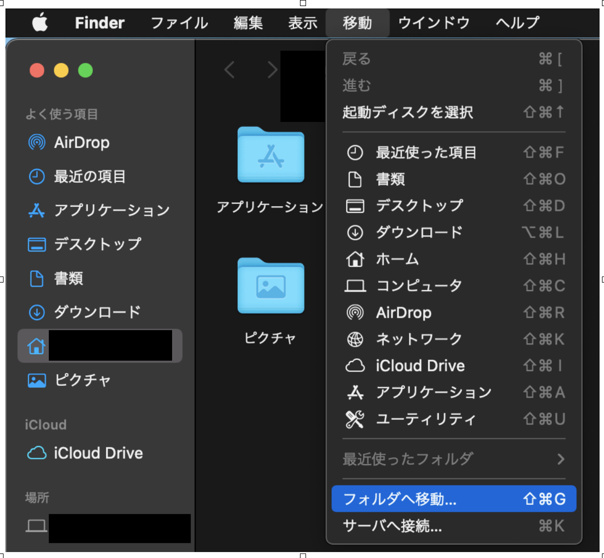 Finderで、メニューバーの移動>フォルダへ移動... します。
