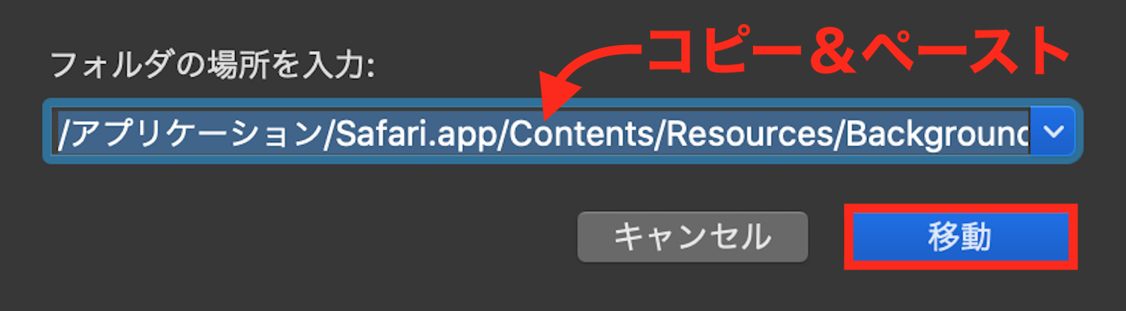 をコピー&ペーストで入力して、「移動」ボタンをクリックします。