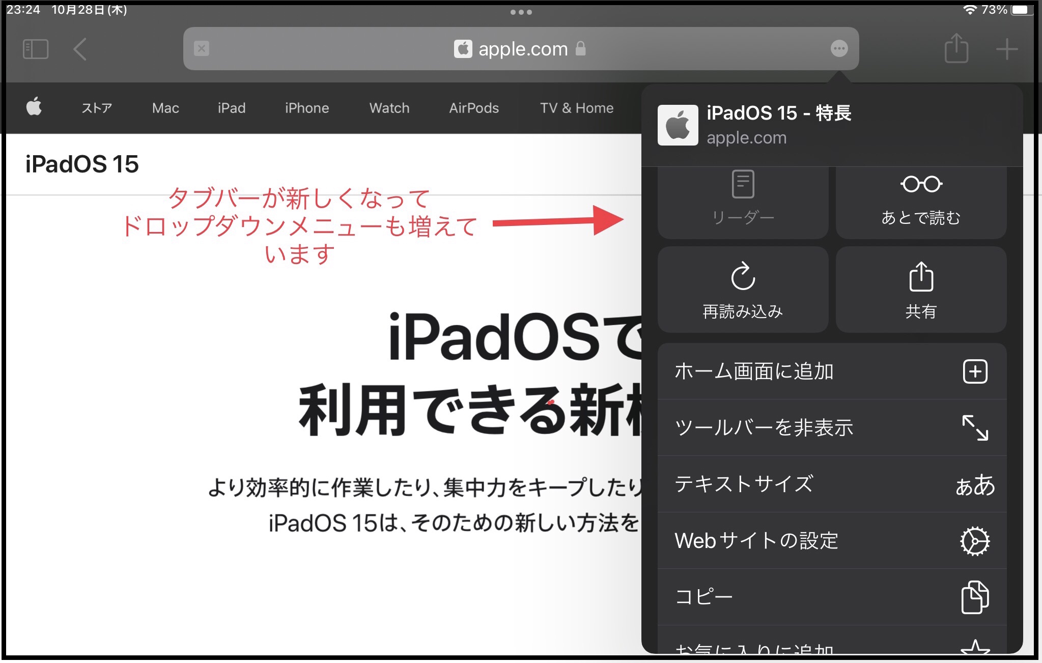 15.1になってから、タブの中に新しく機能が増えたようなので、追加しておきます。