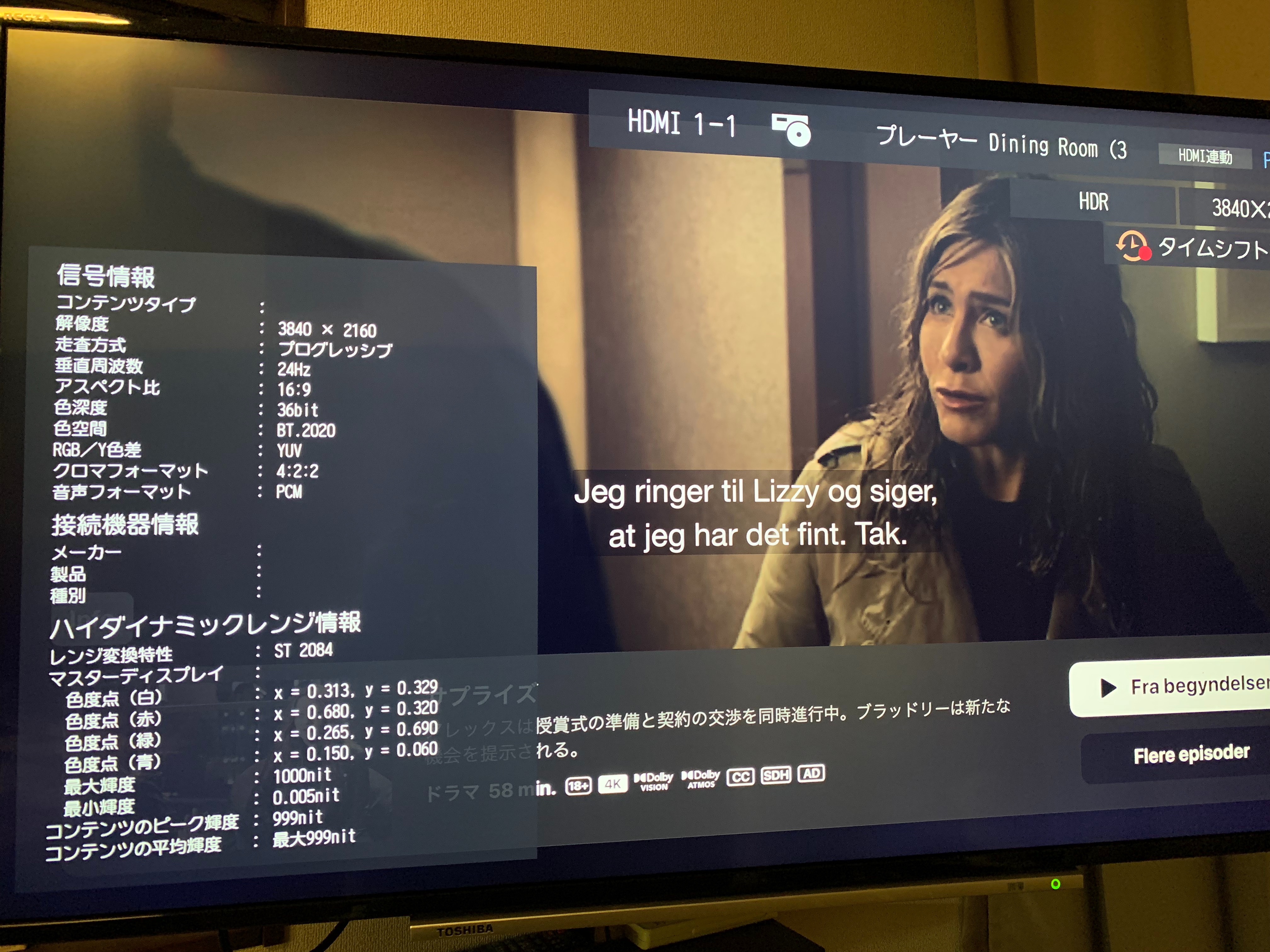 Atmos対応番組、例えばAppleTV+の「The Mourning Show」を再生中