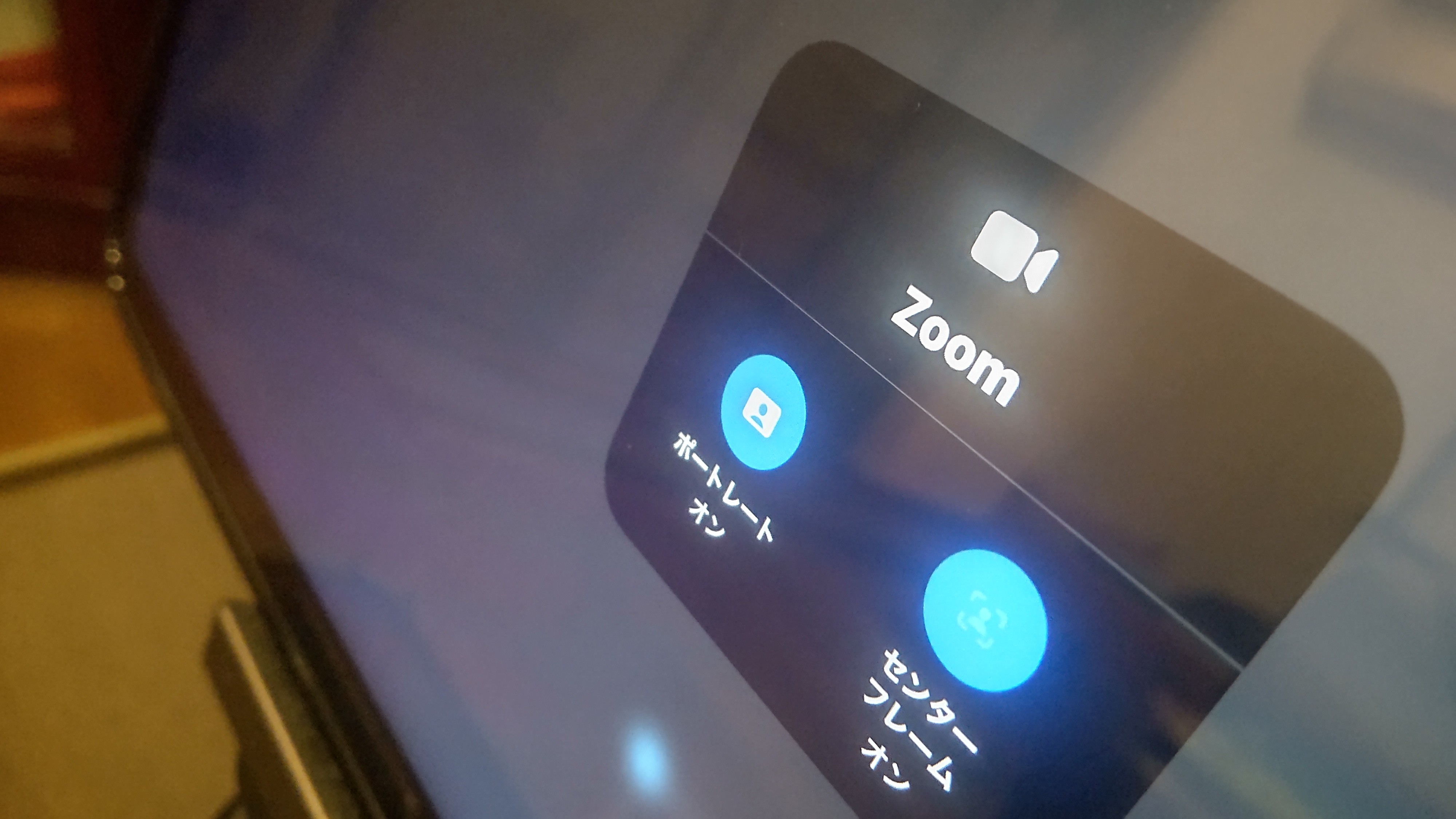 画像のようにセンターフレームボタンはポートレートボタンとは違い中央表示が白ではなく灰色表示になっているためだと思いますが、Zoomアプリやカメラアプリの設定でそれらしい箇所が無いので困ってます。
