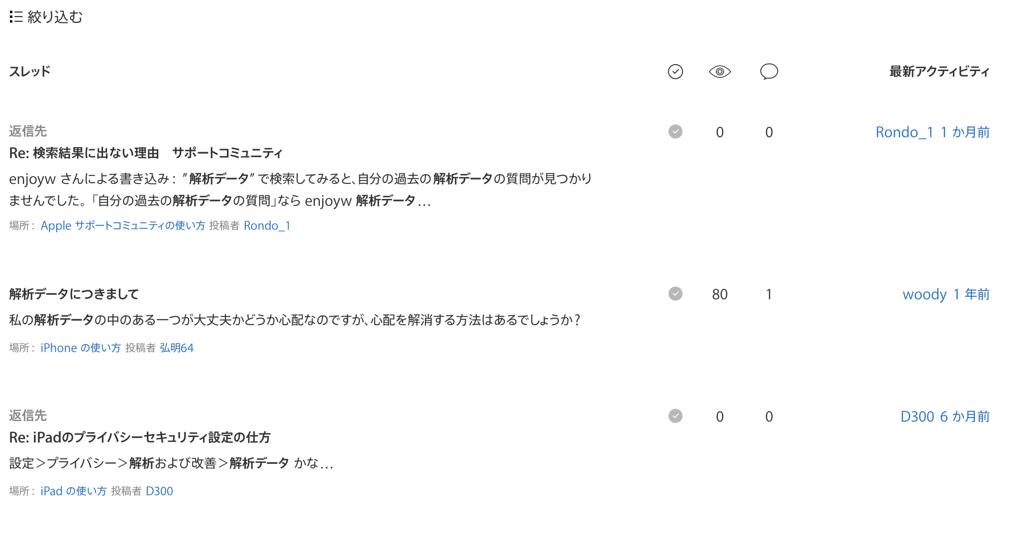 ”解析データ” で検索してみると、自分の過去の解析データの質問が見つかりませんでした。