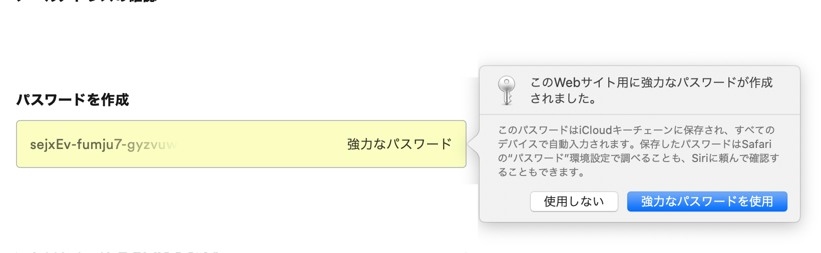 「強力なパスワードを使用」ボタンを押下して、パスワードの変更が完了しましたが、iCloudキーチェーンに保存されておりません。環境設定で確認すると古いパスワードのままです。