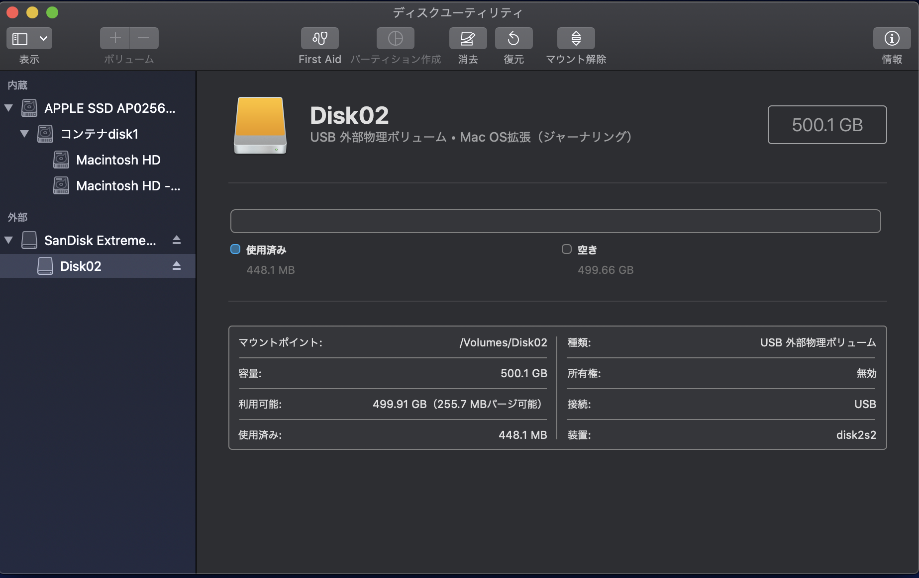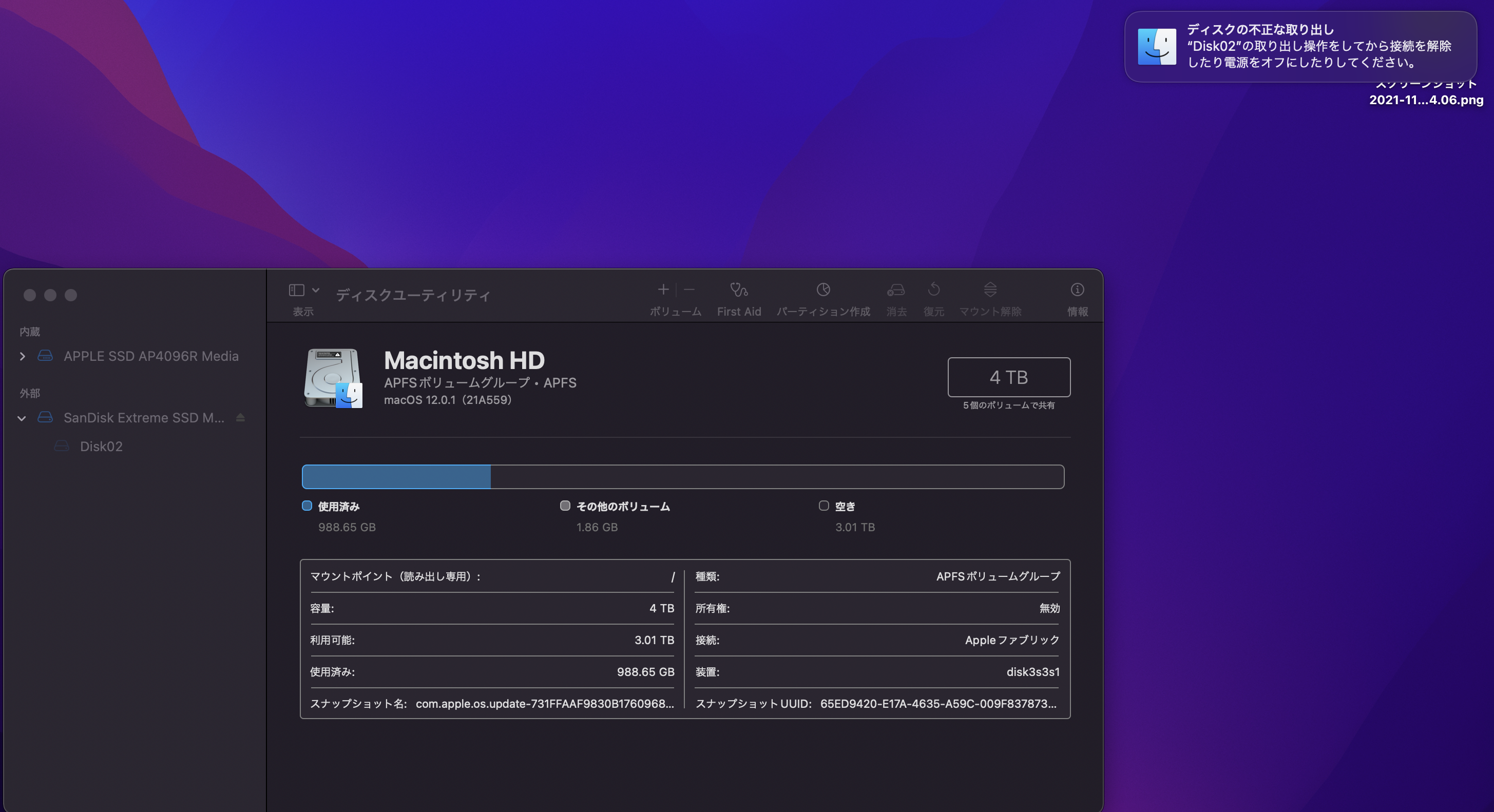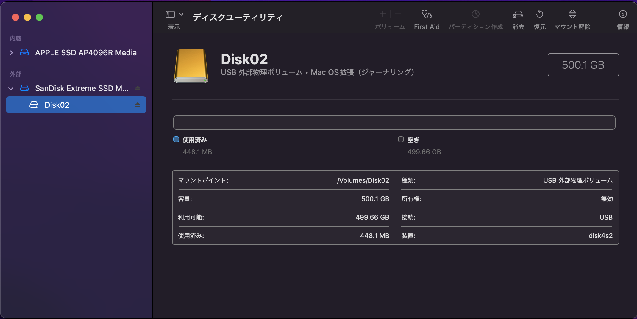 内蔵ディスク(APPLE SSD AP4096 Media)はdisk0ですよね?