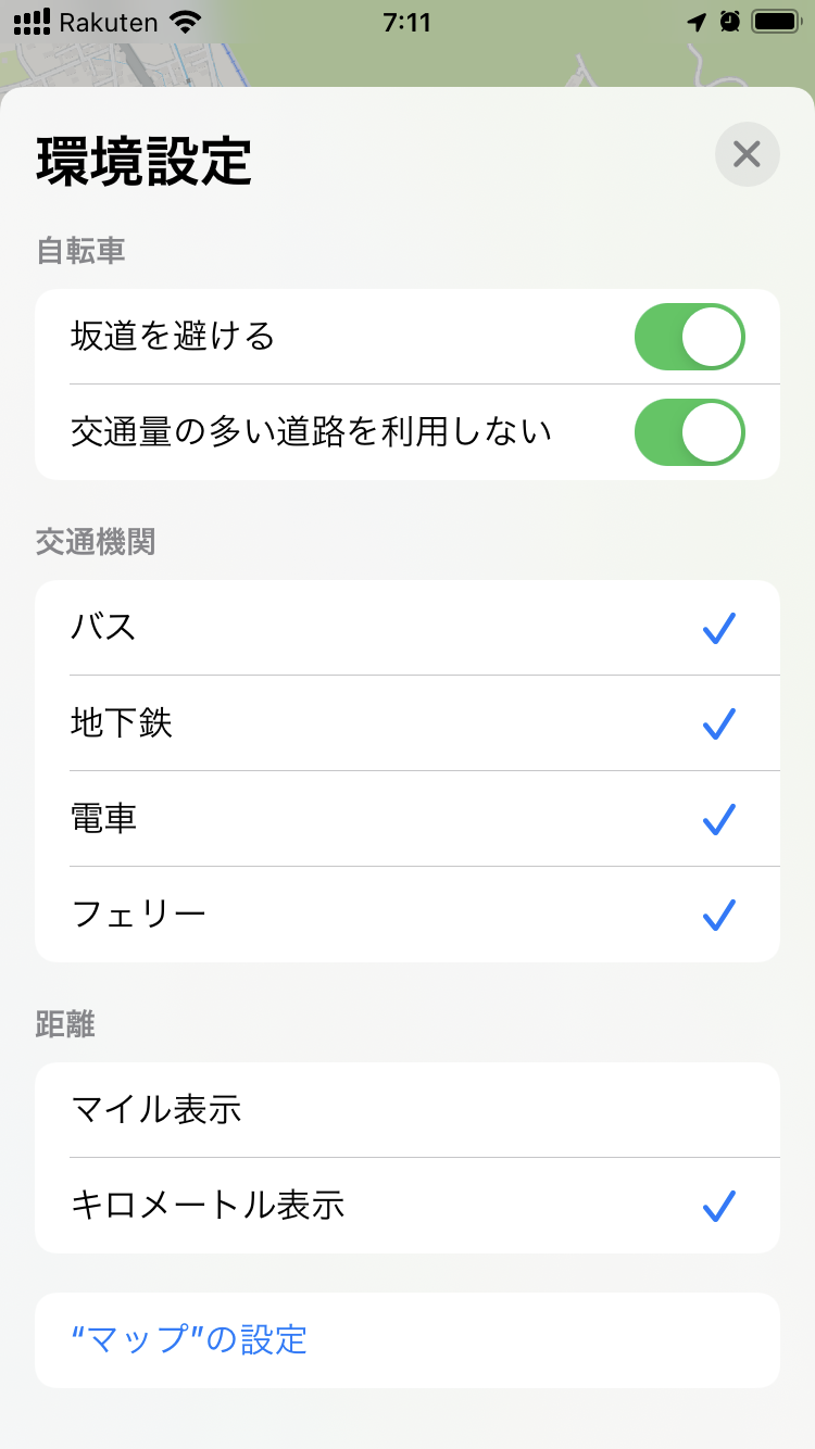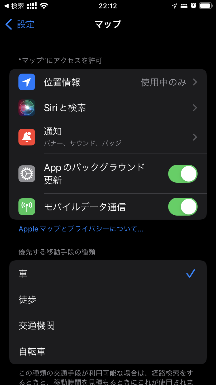 Spotlightにはナビゲーション音声が出てくるけれどマップの設定を探しても見つかりません。