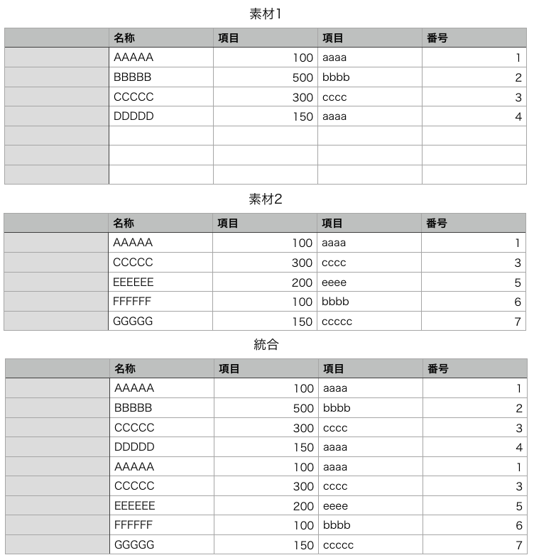 それぞれの「素材」の表は、それぞれ一日で朝、昼、夕と更新されますので、applescriptを実行して日に3回、統合する作業を行えたらと思っています。
