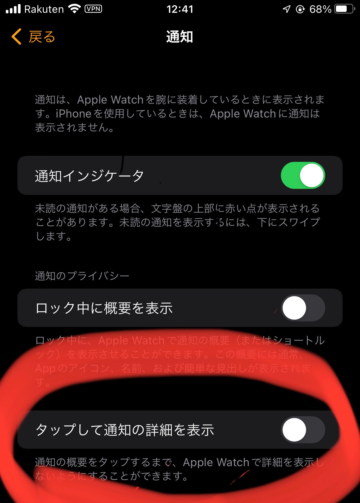 • Watch App >アクティビティ>通知のグループ化>「オフ」、「自動」、「App 別」それぞれ設定した場合、その結果をご確認ください。