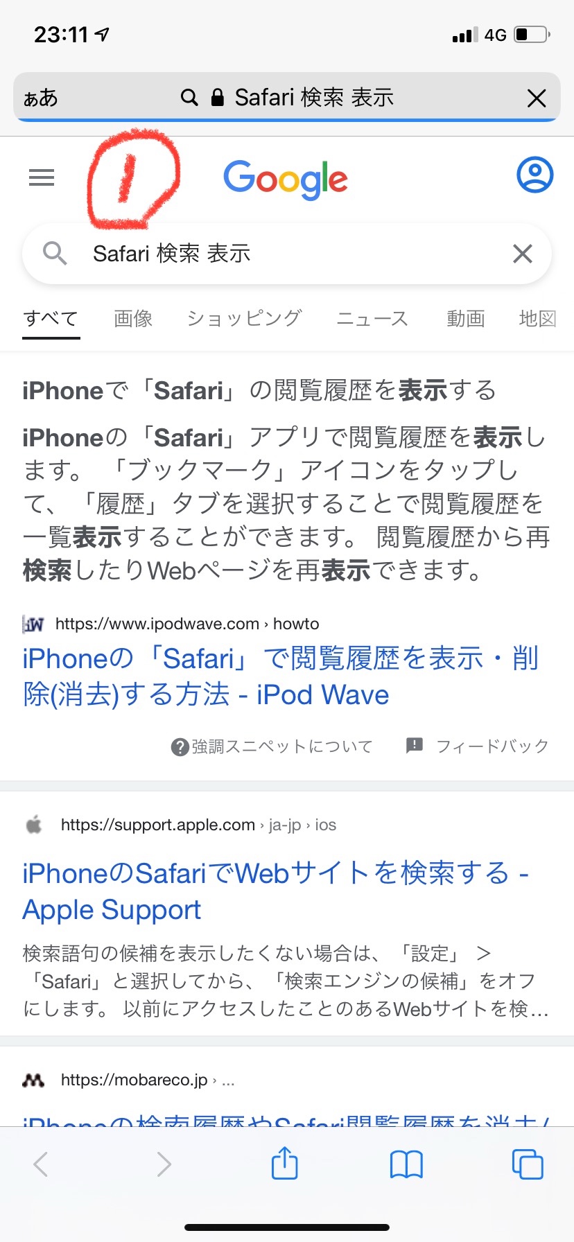 ②途中まで検索ワードを自分で入力、出てきた候補を選択して検索する