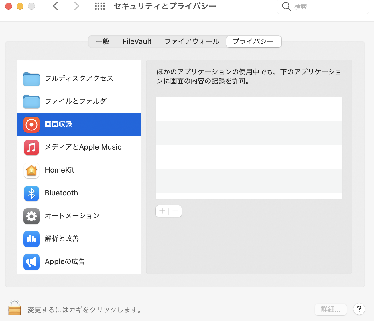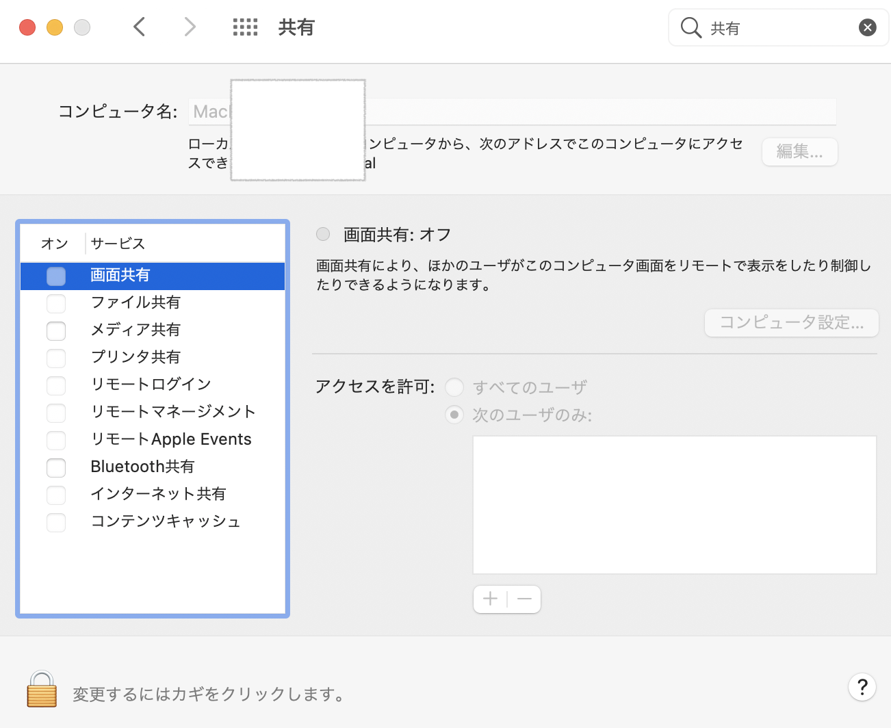この画面は監視されています mac 画面共有OFF、リモートマネージメントなど共有全部OFF
