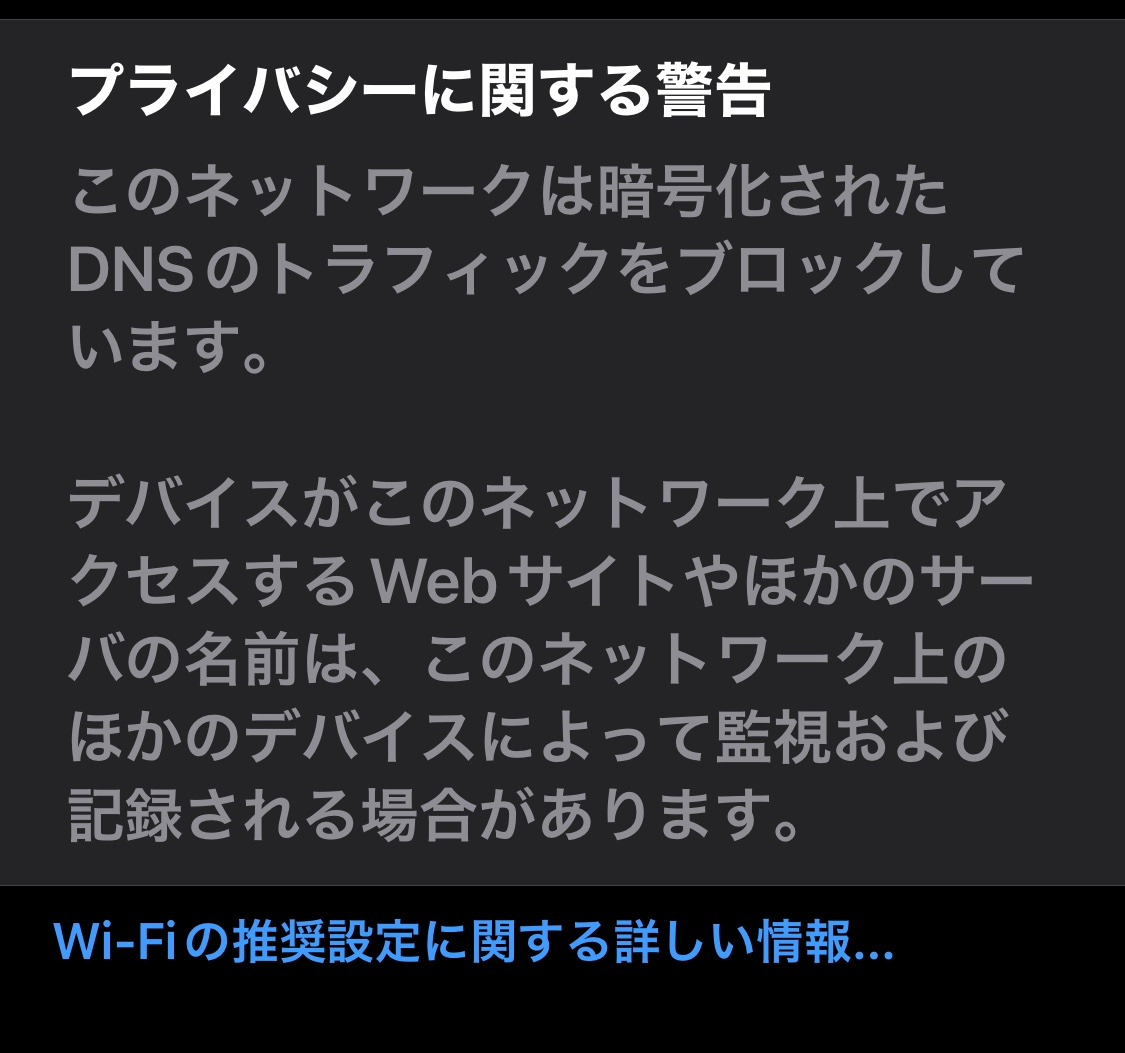 WiFiで暗号化されたDNSをブロックしている…警告について