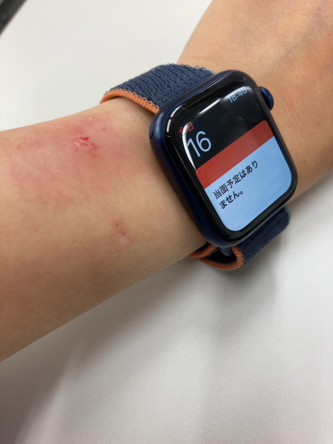 先ほど痛さを感じて、時計をずらしたら水ぶくれがやぶれたようになり血がにじんでいました。