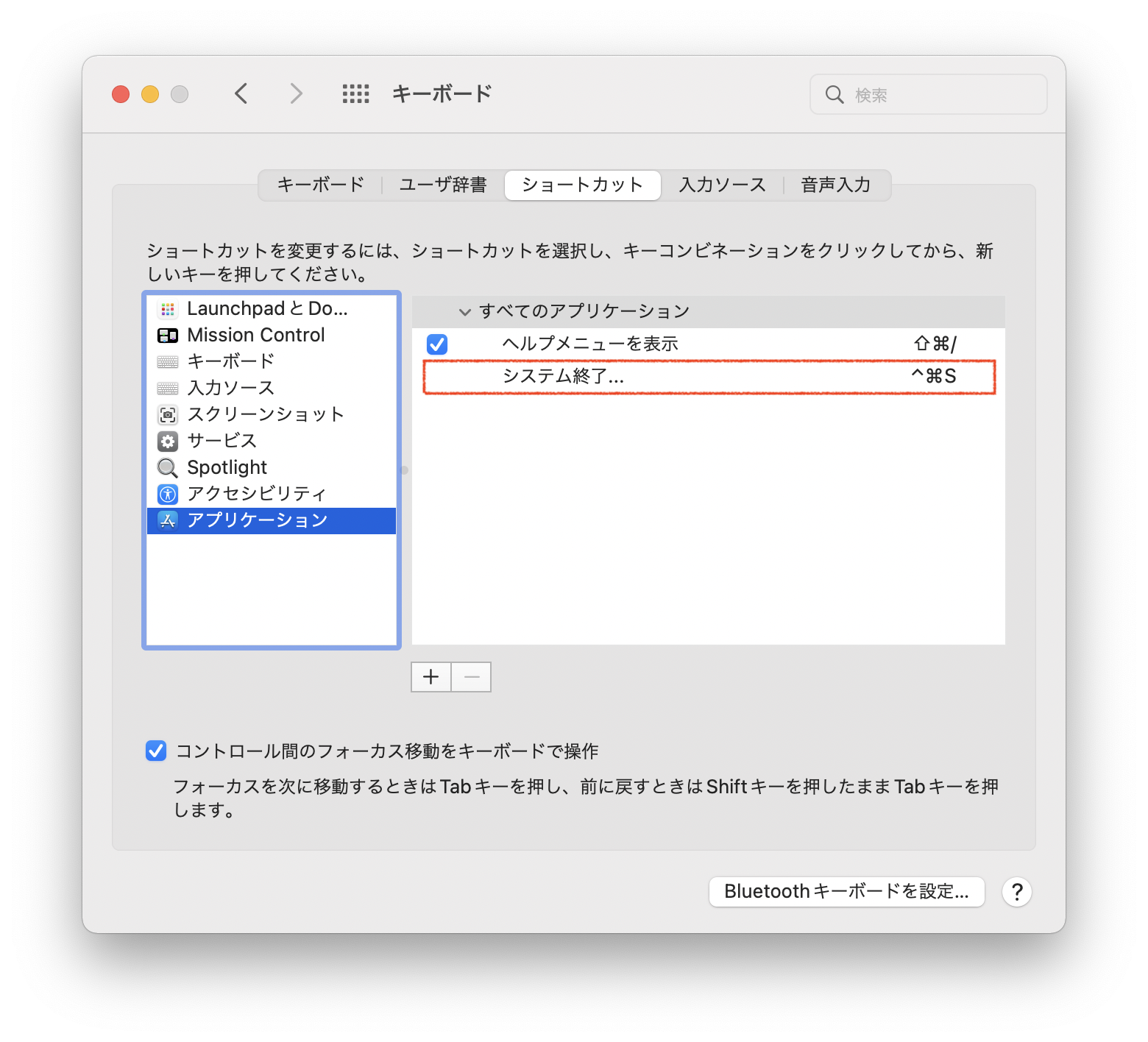 システム終了にControl+電源ボタンでシステム終了のショートカットが行えていました。
