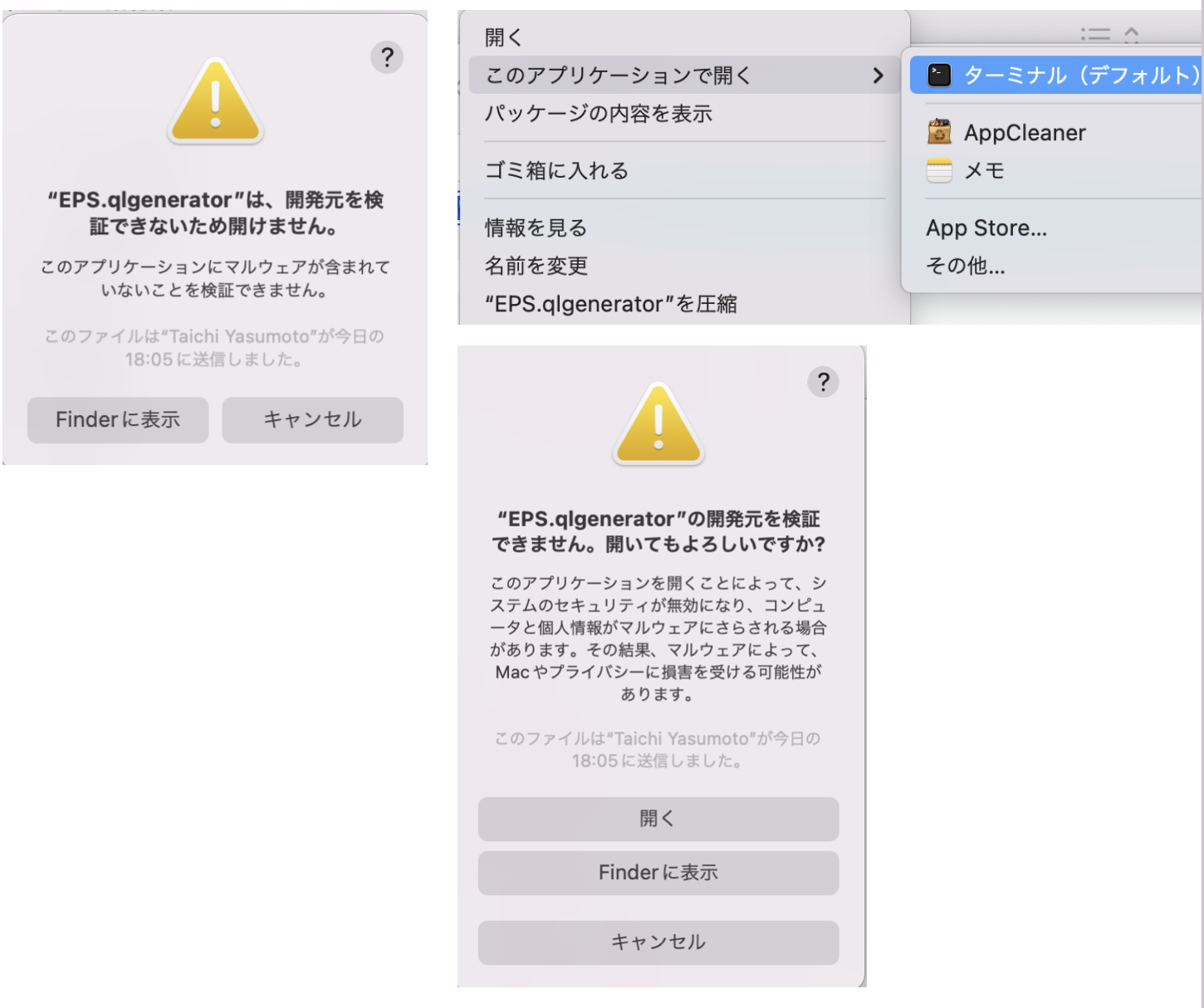 EPS.qlgeratorの開発元を検証できません.開いてもよろしいですか