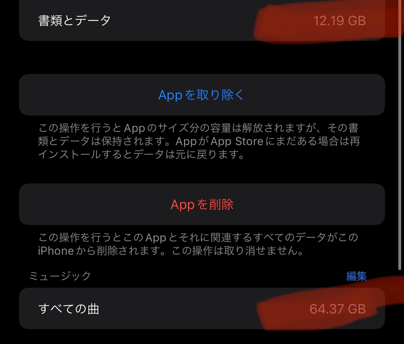 何度同期をしても、書類とデータの容量とすべての曲での容量が合いません。見かけは12GB、実際は64GBです。