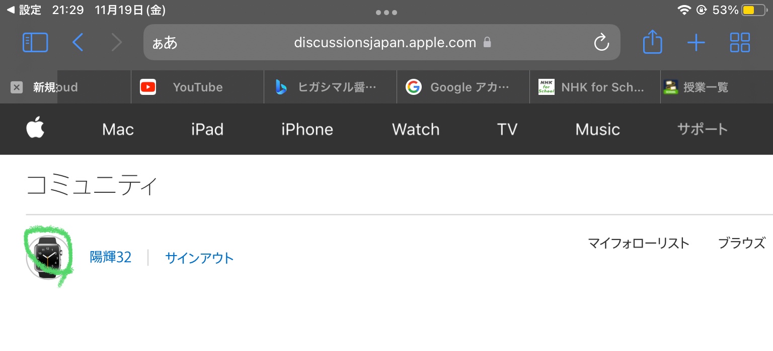Appleサポートコミュニティで名前のとなりのアイコンを写真に