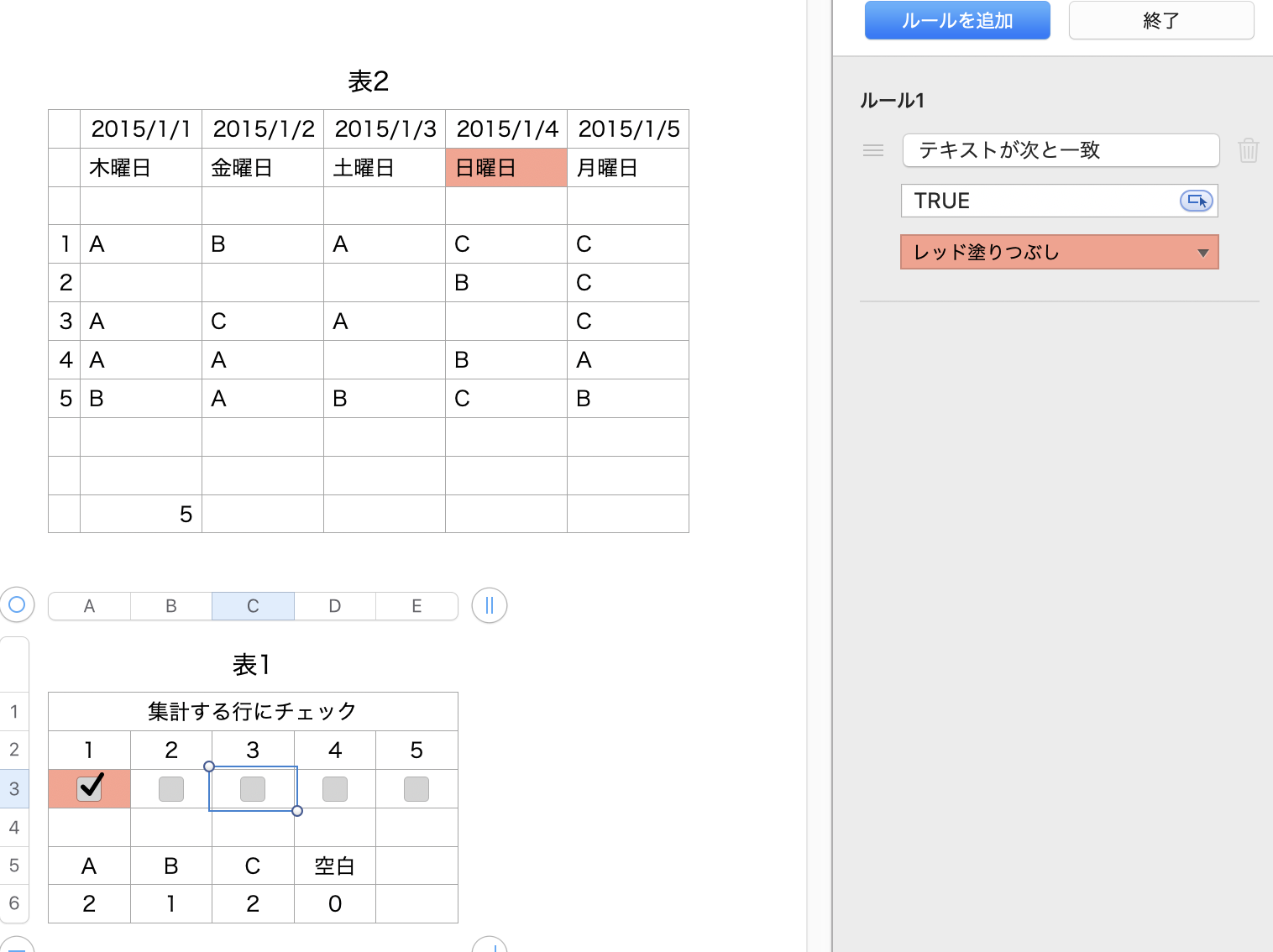 まず、1.2.3.4.5のどの行をカウントするのかのチェックボックスを作る。