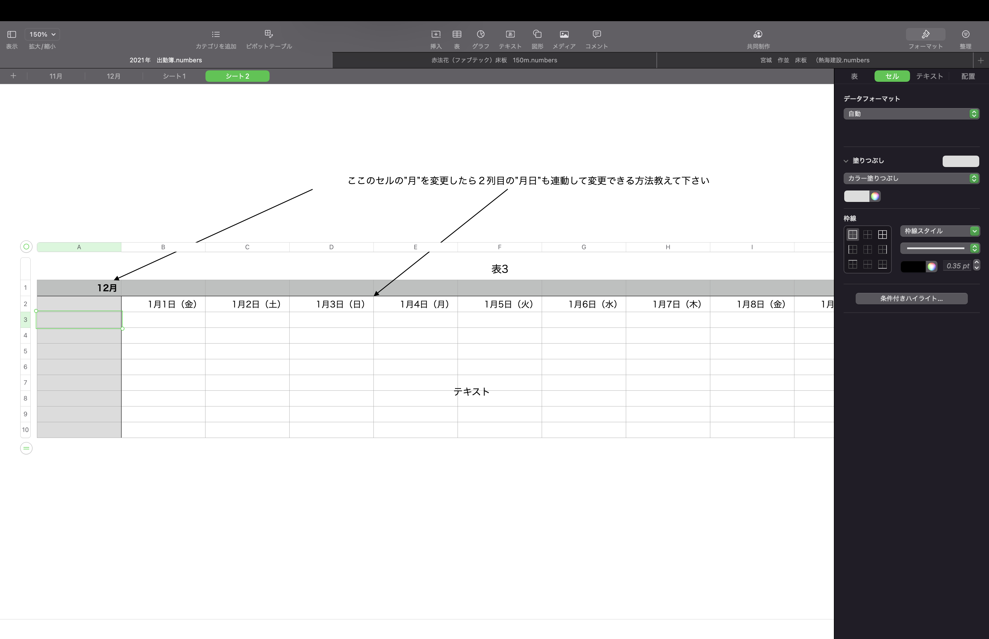Numbers関数について 日曜日だけ赤文字に変えかた教えてください