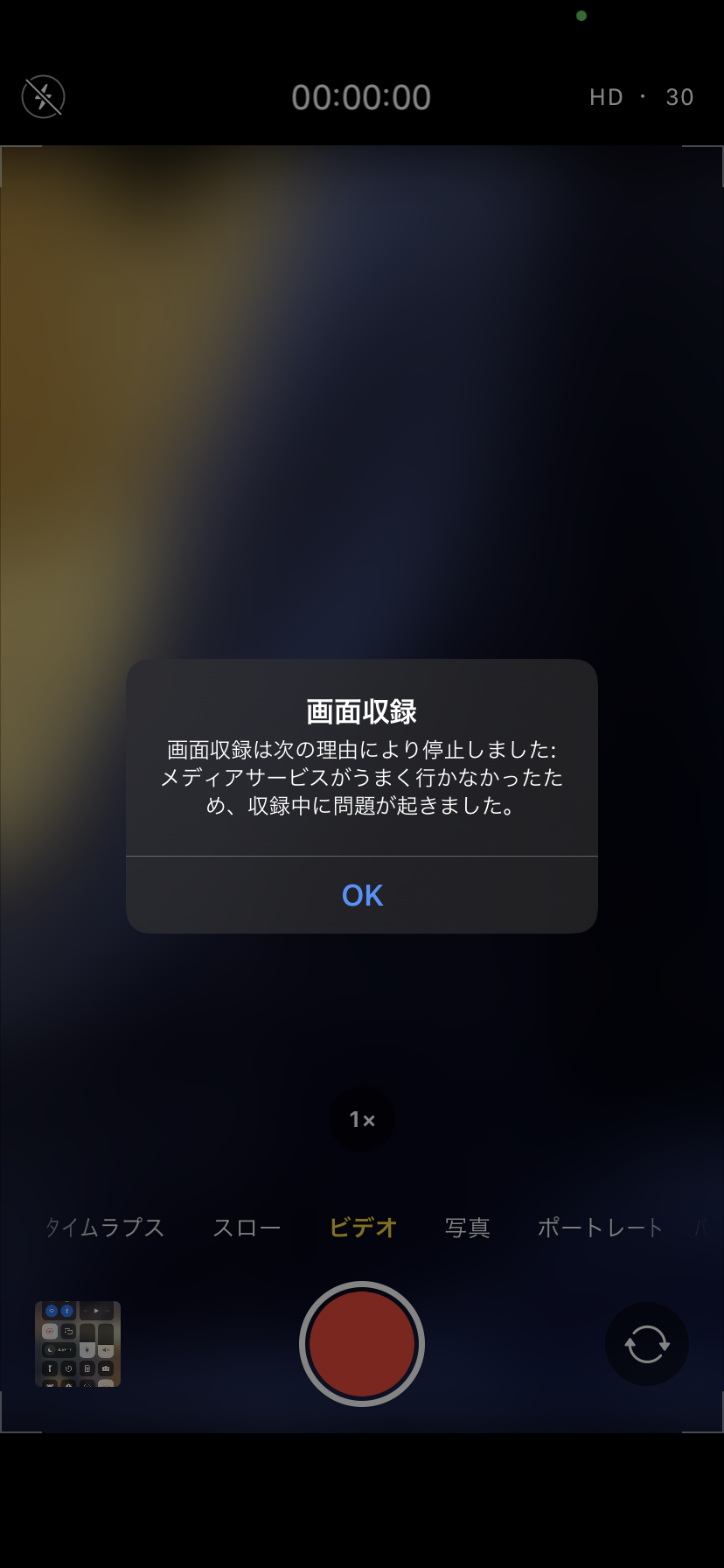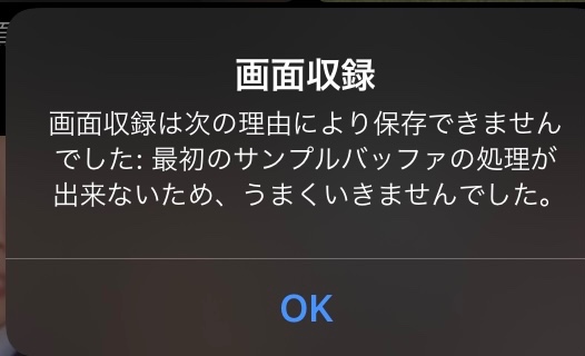 画面録画をしようとすると、最初のサンプルバッファの処理ができないため、うまくいきませんでした。や、メディアサービスがうまく行わなかったため、収録中に問題が起きました。などと出て、できません。