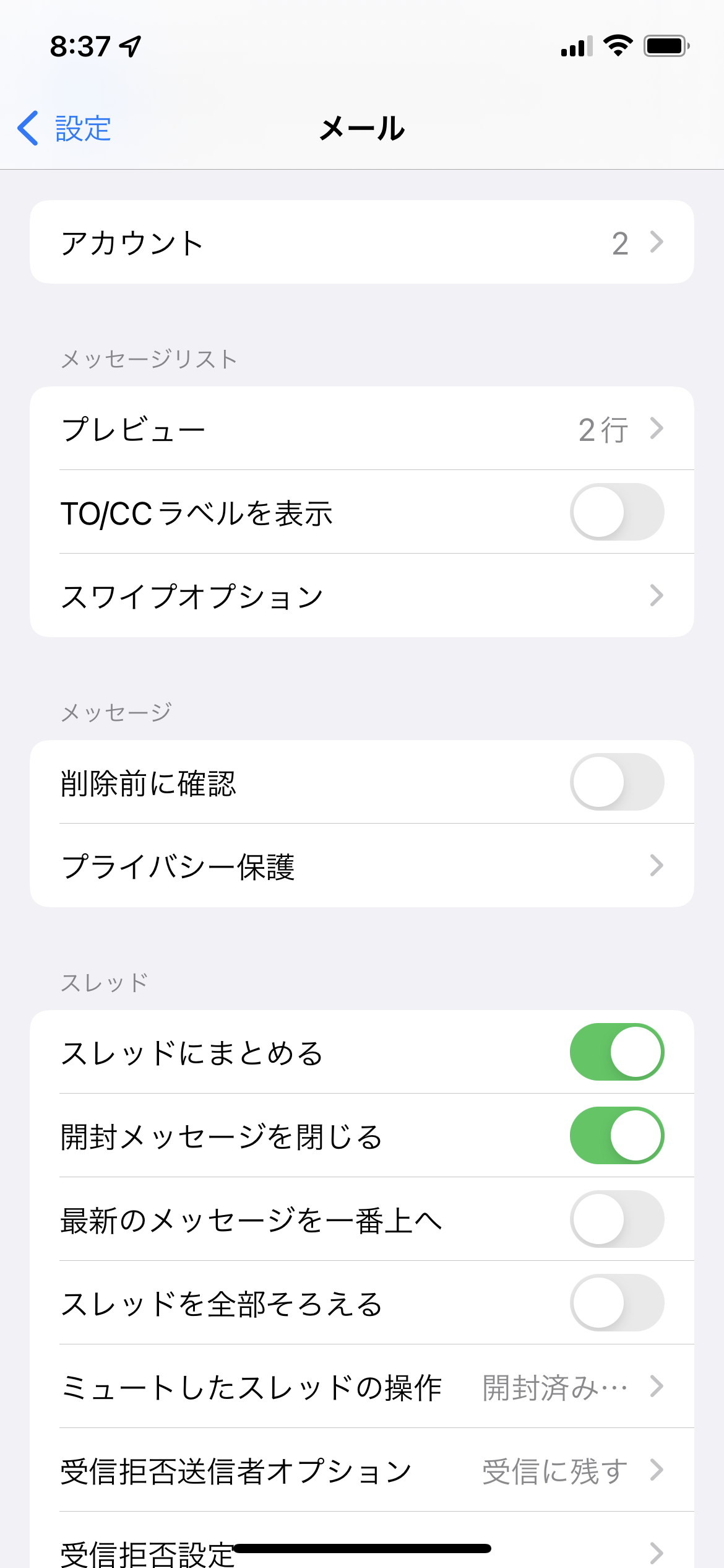 設定→メール→スレッドにまとめるを選択しているのにまとまりません。